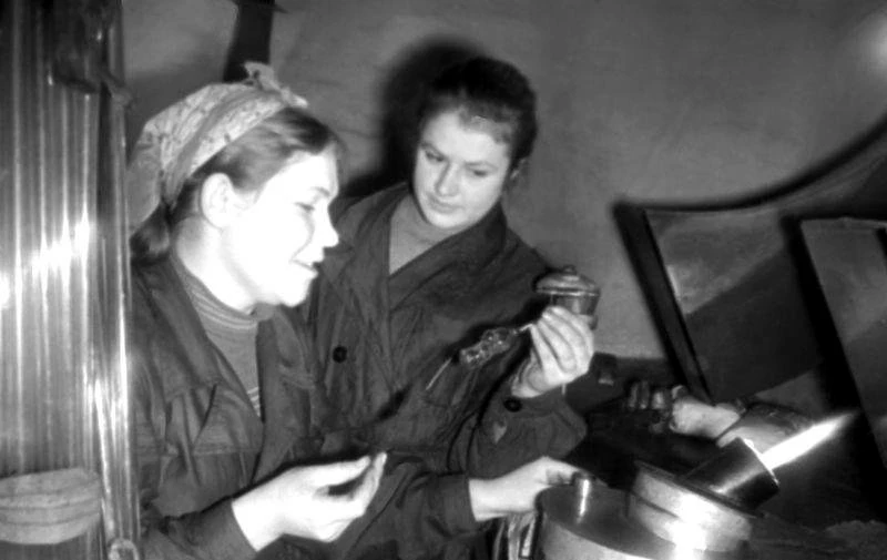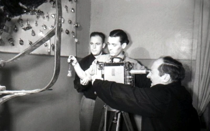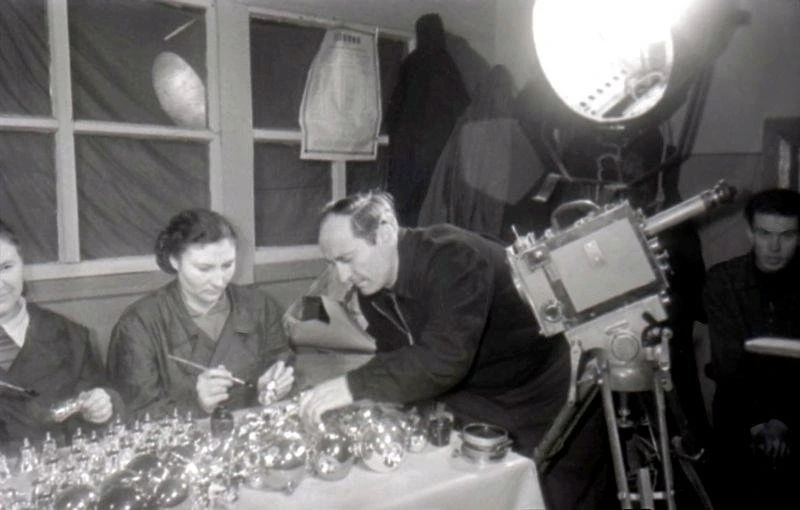 1958 год, Омск, Центральный райпромкомбинат. В стеклодувном цехе идёт киносъёмка. Савин Эдуард Исакович (Госкаталог.РФ)