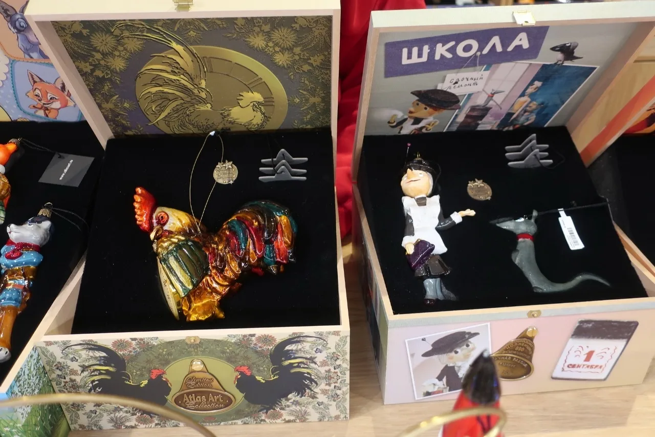 Мы всё ещё в ГУМе. Атлас Арт. Не знаю, сколько стоит, например, набор "Варежка", но, видимо, эта цена покрывает затраты на лицензию от Союзмультфильма. У Бирюсинки не получилось приобрести лицензию, поэтому персонажей из "Бременских музыкантов" пришлось обзывать по-другому
