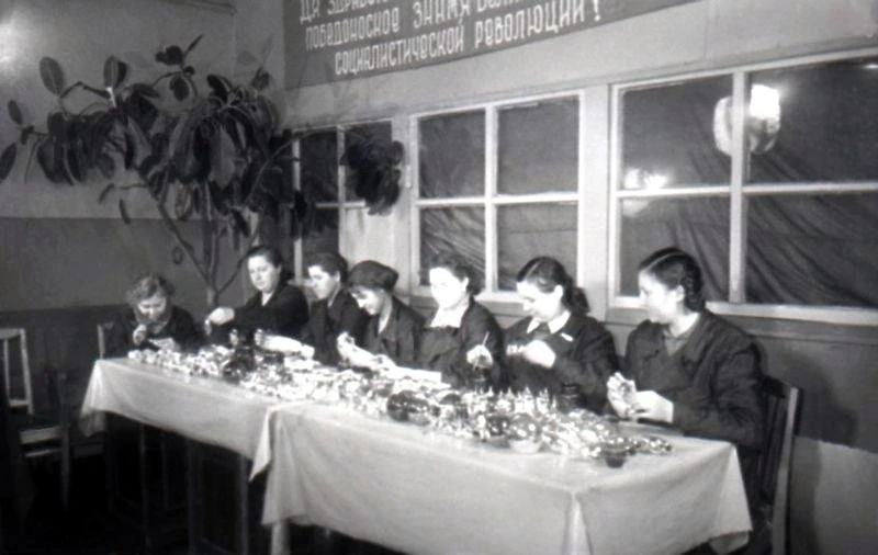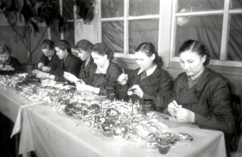 Попалась статья про завод Эвис. Размещу, пожалуй эту фотографию, тут видно размеры игрушек https://kluch.media/materials/volshebstvo-iz-stekla-kak-v-gus-khrustalnom-rayone-vyduvayut-unikalnye-elochnye-igrushki/