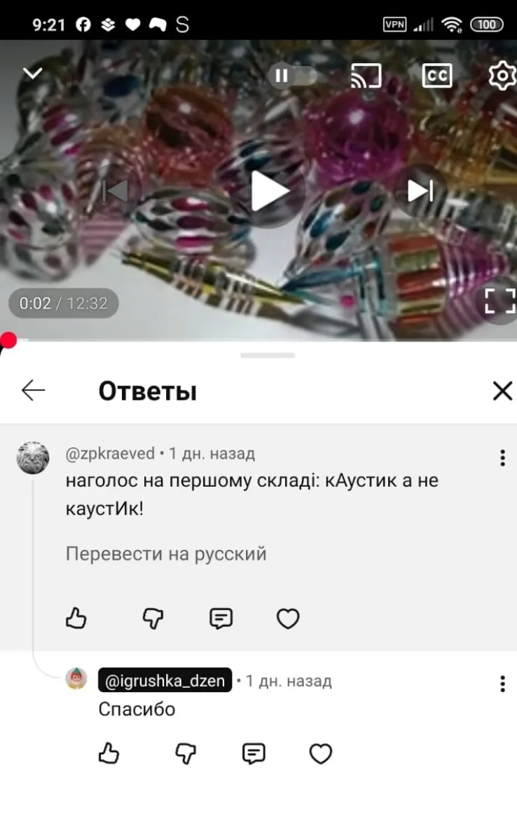 КаталОг и кАустик. Эти два слова я произношу с ударением не на том слоге. Я говорю "катАлог" потому что все вокруг так говорили, прикиньте🤣 И муж мой так говорит, хотя он вырос в другой стране. Никогда не задумывалась о правильном ударении, пока под видео меня не поправили. Я, кстати, очень благодарна тем, кто поправляет. А тут выяснилось, что я произношу "каустИк"😀 Но тут, наверное, от того, что я с этим термином была знакома только в печатном виде. И тут мне пришла поправка. Человек на меня подписан, то есть смотрит мои видео на русском языке, а комментирует на мове, зная, что я из России. Ну чё, поблагодарила😜