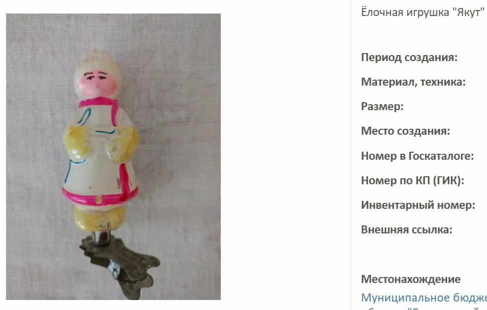 Фото из музеев (Госкаталог.РФ). Снегурочка, Якут, Хан, Турист, Школьник и Пчела. У меня только один вопрос - как они Снегурочку от Якута отличают? Эти две игрушки находятся в одном омском музее.