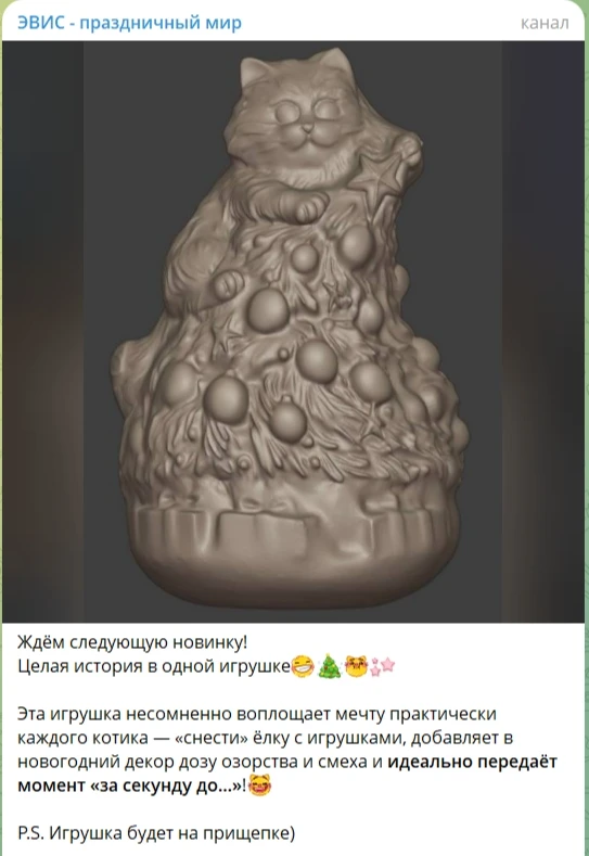 Сегодня многие производители показывают нам, как создаются ёлочные игрушки. То есть мы видим не окончательный результат, а какой-то этап. И мне иногда полуфабрикат нравится больше (не буду говорить, какие игрушки в итоге разочаровали). Эвис представил вот такую заготовку. По-моему, получается милота с очень новогодним сюжетом. Только бы не испортили раскрасом.