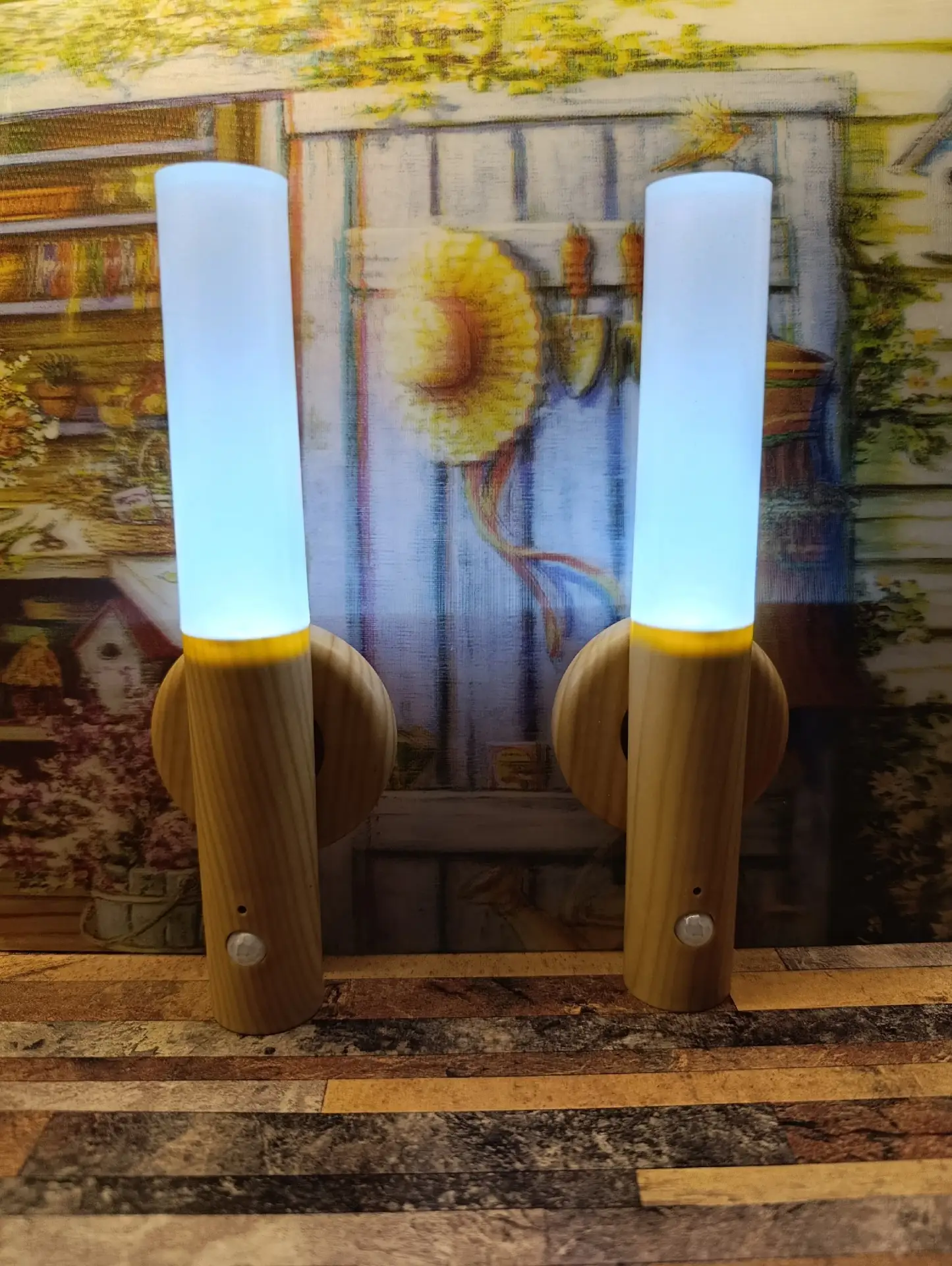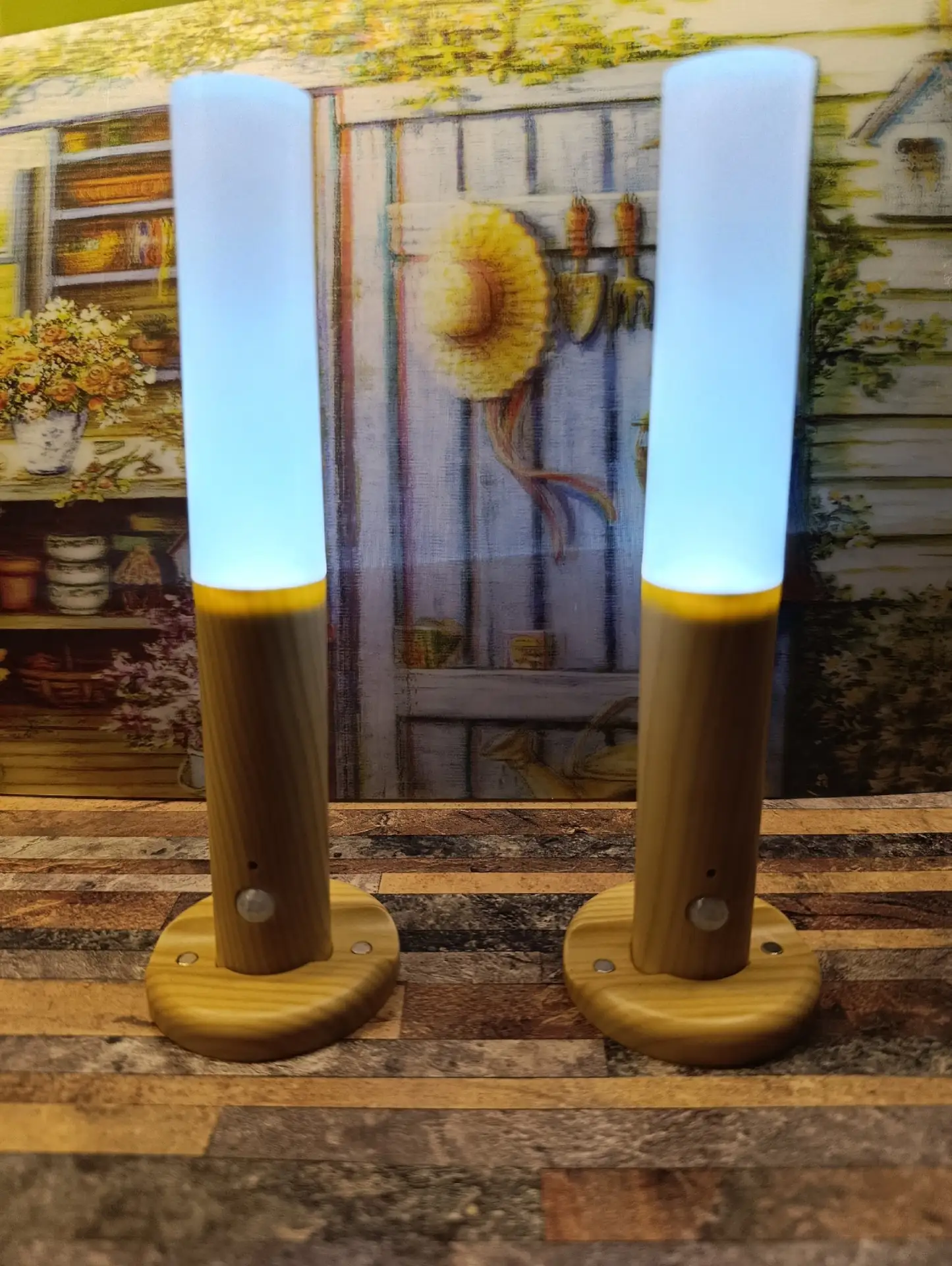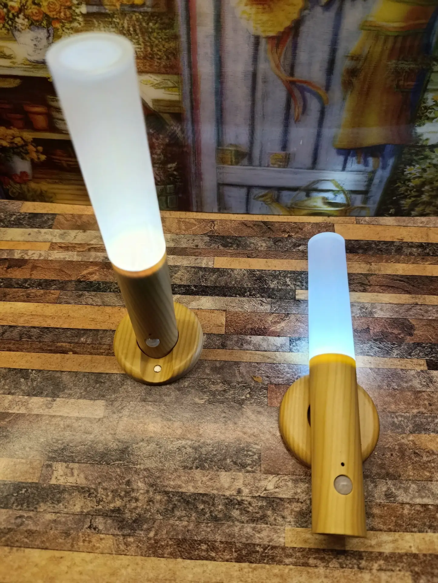 Купила вот такие беспроводные светильники на ОЗОНе, зарядный шнур в комплекте. 2 штуки стоили 379 рублей. В процессе ремонта на втором этаже образовалось что-то типа гардеробной, но там нет выводов под светильники. Вот я купила такие аккумуляторные. Классные, между прочим. Там ещё и датчики движения есть. Можно настроить свет как белый холодный, так и белый тёплый. Можно держатель повесить на стену, получится бра, а можно поставить на подставочку. В наше время беспроводные светильники, по-моему, очень актуальны. И вполне может служить альтернативой свечки. Цены на современные светильники приятно поражают
