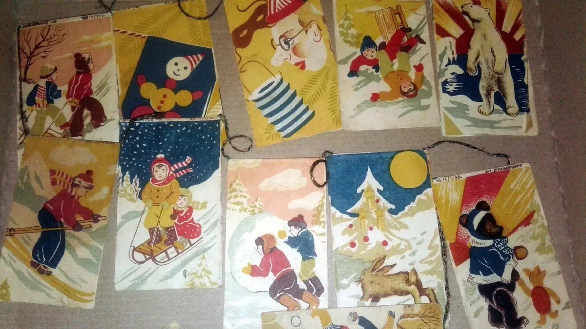 Мысли вслух. А вы заметили, что ёлочные флажки с новогодними (зимними) сюжетами редкость? На флажках изображено всё что угодно - птицы, звери, дети. Понятно, что раньше флажки были универсальными - ими украшали все праздники в школах и садах (на фото 30-40-е годы). Но потом-то они стали чисто новогодней атрибутикой. У меня два комплекта флажков конца 30-х годов. Один совсем какой-то детсадовский, а второй с зимними сюжетами, то есть именно новогодние. И три комплекта из 60-х - с героями мультфильмов, с мордами зверей и со зверями-спортсменами