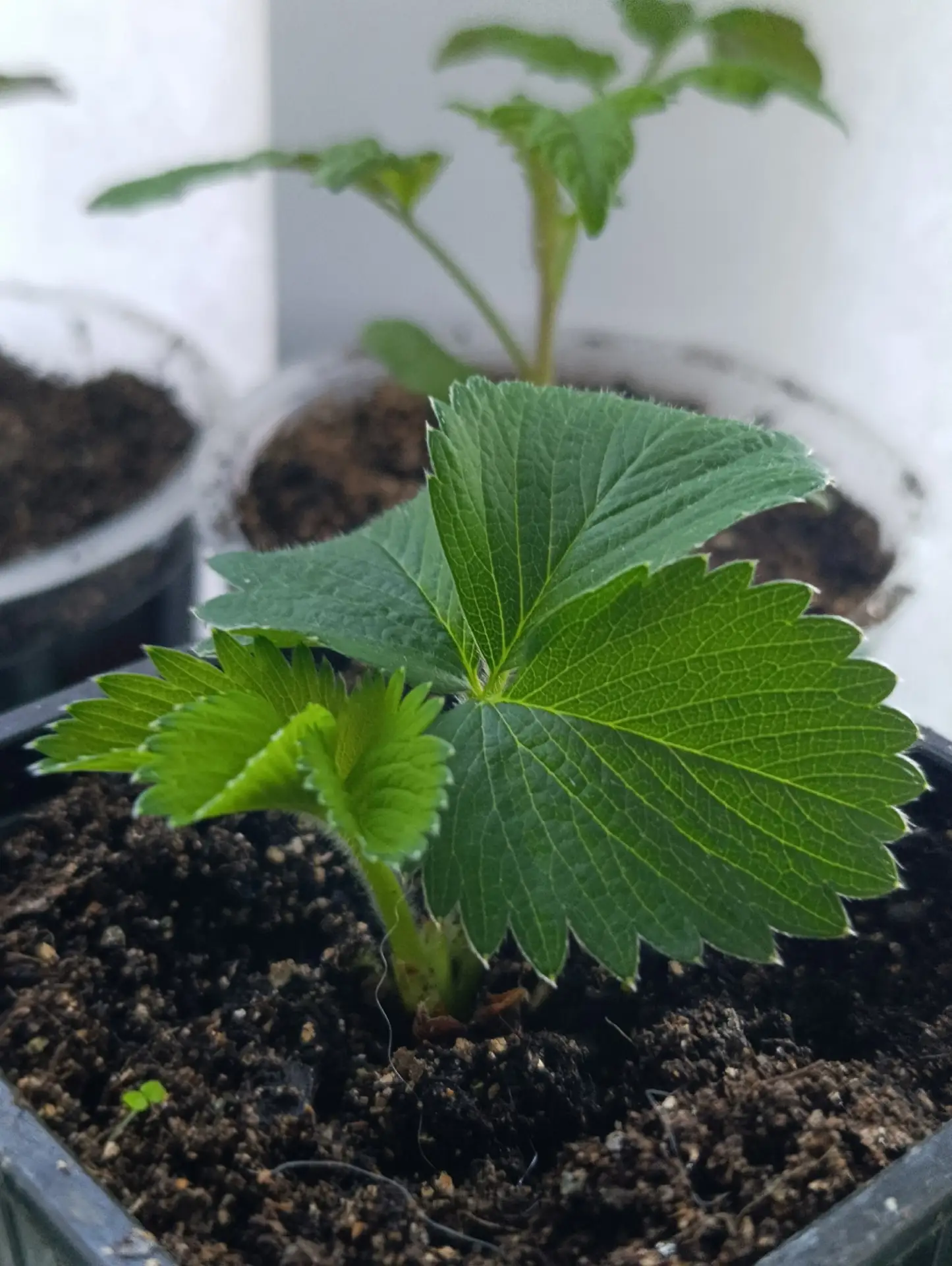 16 марта приехала в ПВЗ заказанная мной клубника из Крыма. 3 сорта - 12+12+6 штучек. Какая-то клубника выглядела лучше, какая-то была чахленькая, но все были живые. И ещё в упаковке оказался лишний кустик. И вот прошло 11 дней. Всё прёт со страшной силой. На многих кустиках уже виднеются цветочные бутоны. Впервые будет пробовать контейнерное выращивание клубники. Самая солнечная стена дома никак не задействована, вот туда и поедут пятилитровые контейнеры. Если кому-то надо, то наберите на ВБ в поисковой строке "Флора Крыма клубника". Ценник очень хороший, но растюшки дорожают к сезону