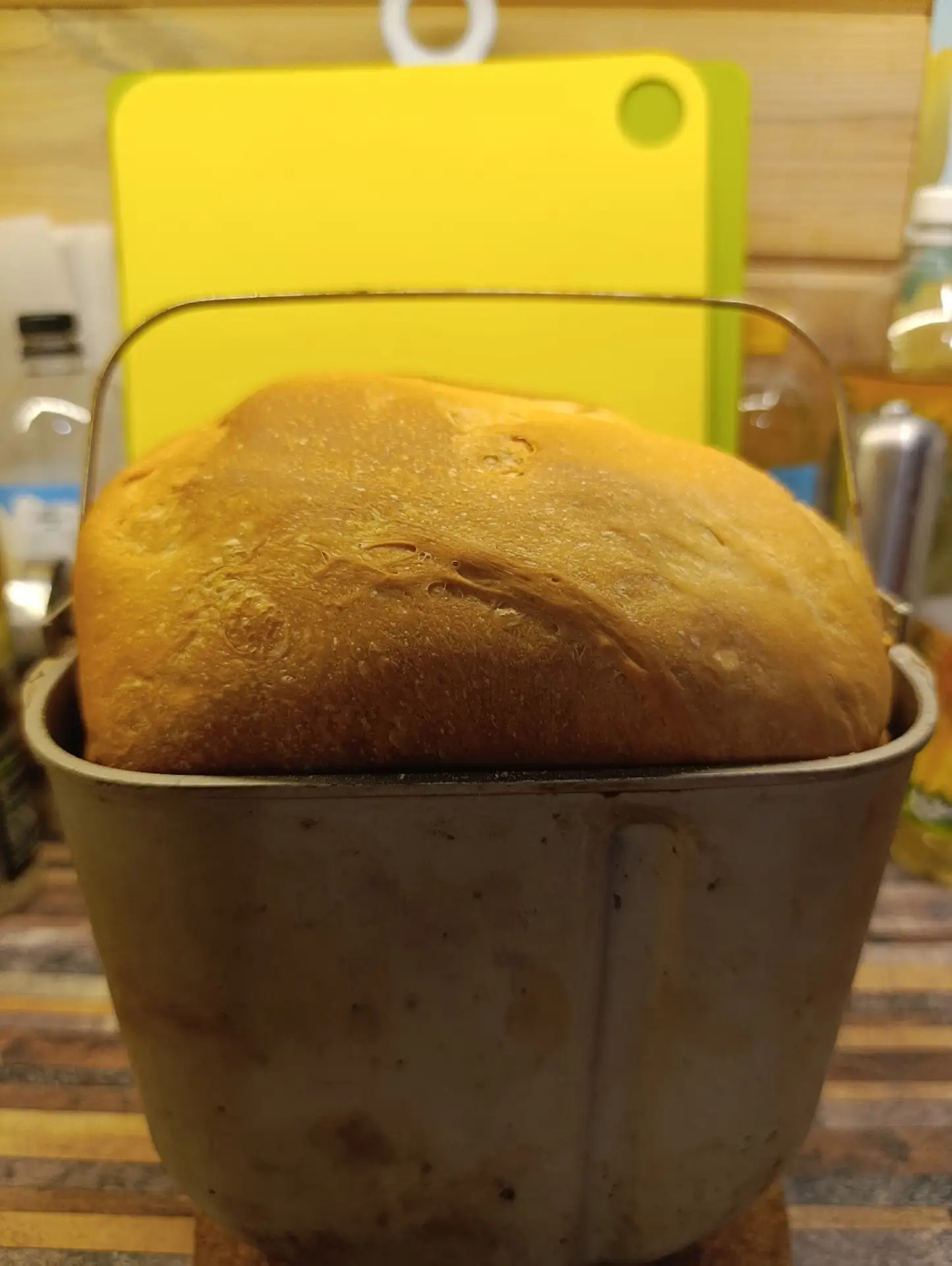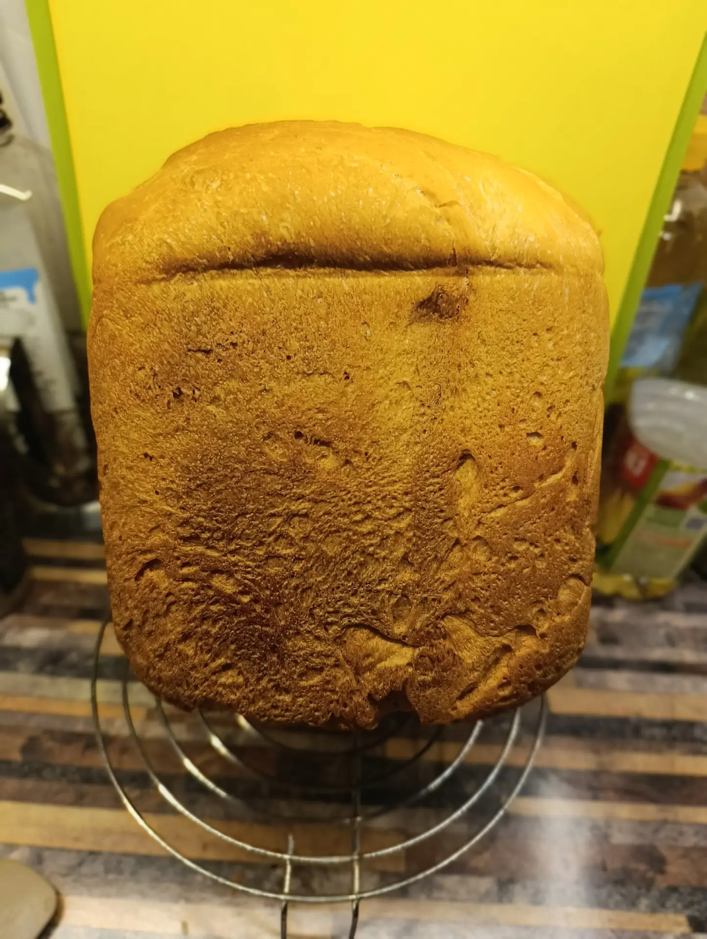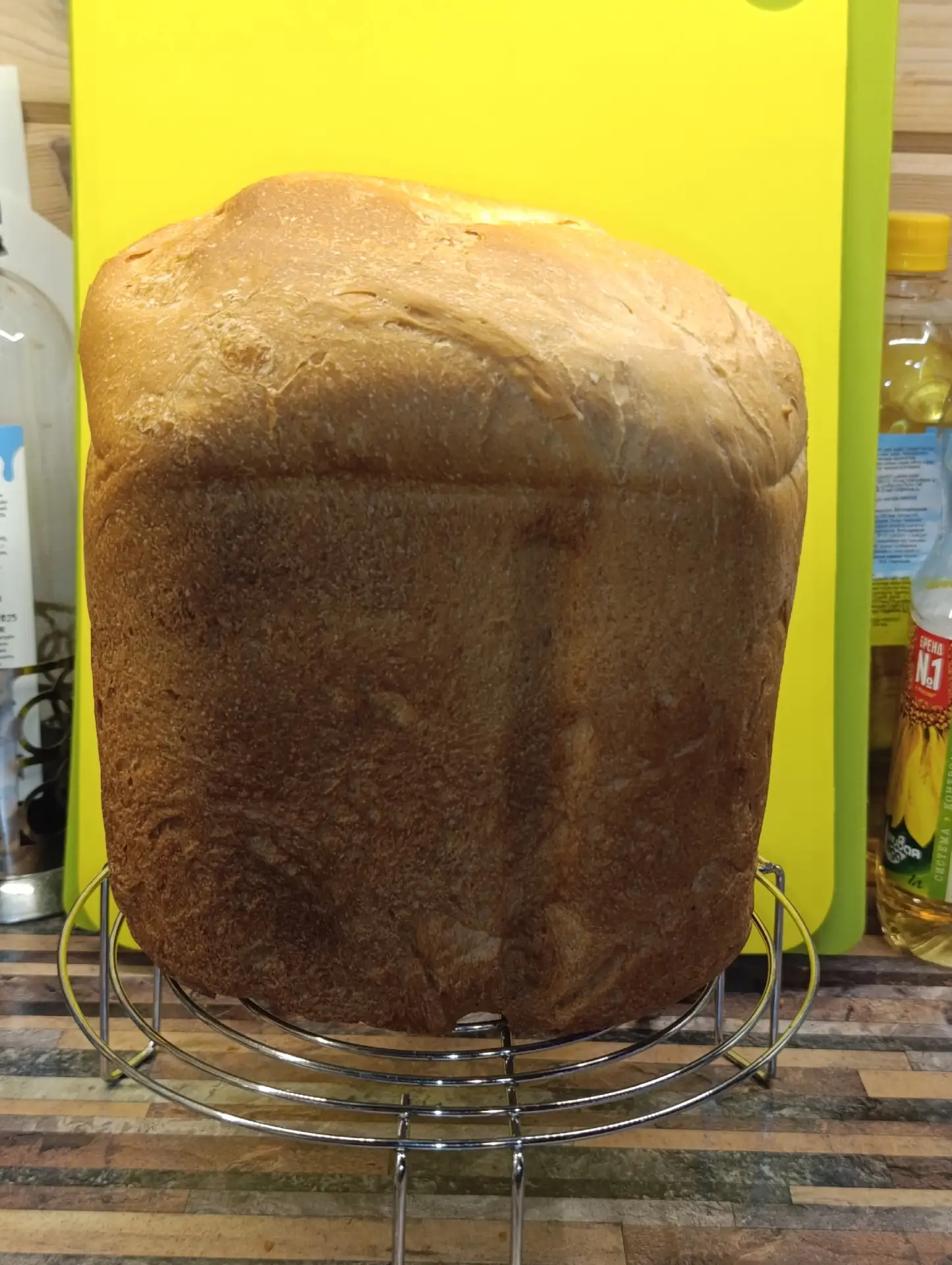Утренний хлебушек средних размеров (по книге рецептов). Даже не представляю, как бы выглядел большой. Запах на весь дом стоит. Мне белый хлеб нельзя, но хоть эстетическое наслаждение получу😊 К вечеру он превратится в панировочные сухари. Но, наверное, нарушу я диету и съем бутербродик с красной рыбкой.