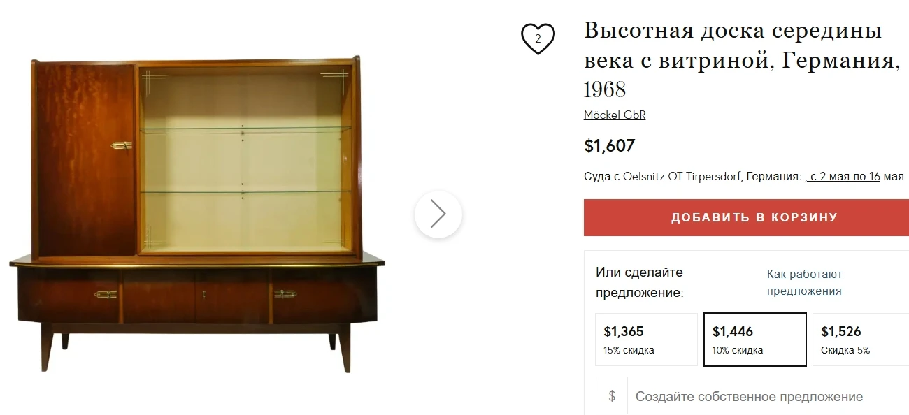 Можно выдохнуть! Новый дом для такс приехал. Для своей коллекции я уже второй раз специально покупаю сервант. Сервант Лейпциг был куплен ещё до строительства дачного дома. В новом доме стена делалась под него. Но прошло время, стало понятно, что таксам не место на первом этаже. И вот наш новый член семьи - сервант 400S, из-за которого в семье шли дебаты, потому что я хотела модель Засниц. Но в итоге, изучая предмет, пришла к выводу, что муж был прав - этот сервант круче, он, похоже, не завозился в СССР, а приехал прямо из ГДР. Буква "S" в описании говорит о его более высоком классе, он полностью деревянный, отделан шпоном африканского дерева макоре, выпущен 11.12.1963. И нашла я в интернете только одно изображение с ним - на сайте забугорных продаж. Готова продать за половину цены сразу, даже с доставкой😀