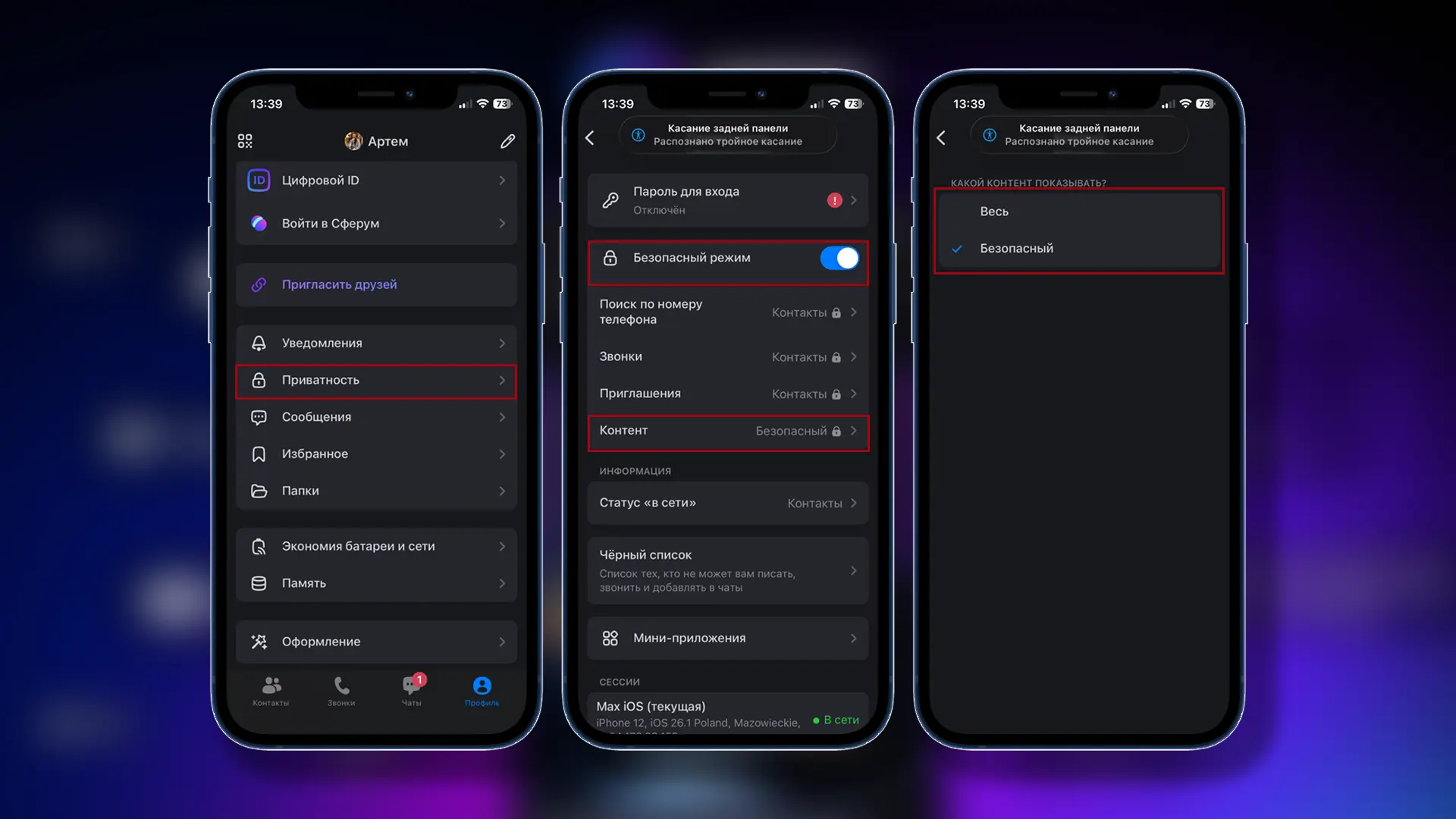 Клавиатура и кнопки были переработаны и теперь имеют отражающие, напоминающие стекло, поверхности. Контекстные меню теперь соответствуют тому же языку Liquid Glass, предлагая плавную анимацию и тонкие отражения, которые повышают чёткость и фокусировку. С этим апдейтом мессенджер наконец идеально вписывается в интерфейс iOS 26. На приведение приложение к новому виду девелоперам потребовался почти месяц с момента релиза новых ОС Apple.