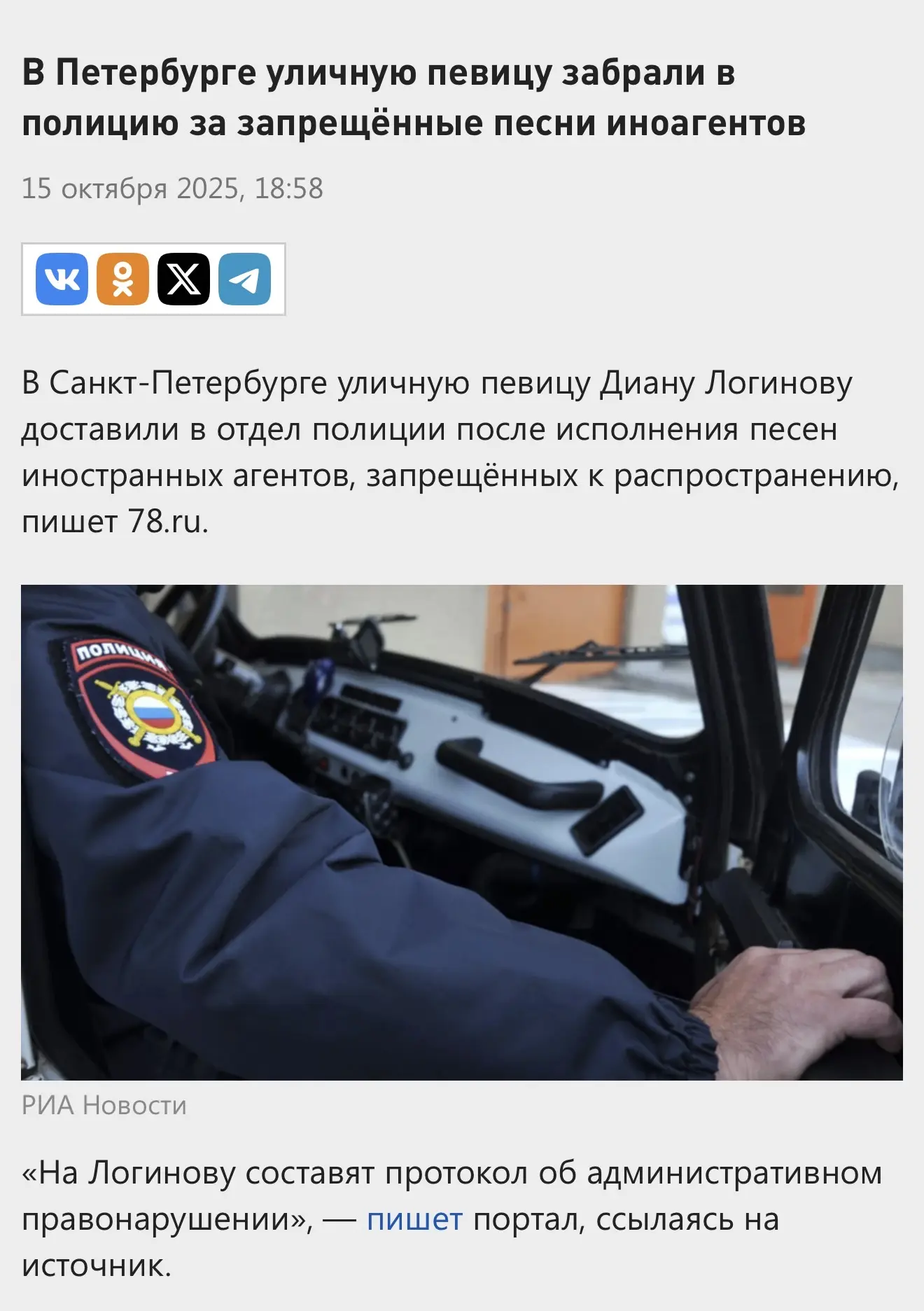 Какая-то девчонка начала исполнять в Питере песни ин.агентов, причём не просто песни, а треки в которых призывали повторить путч как было с гкчп
