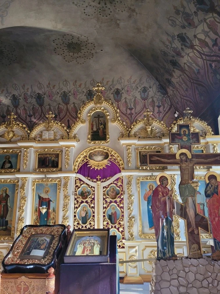 Внутри необыкновенно красивые росписи, много чудотворных икон. За свою историю храм закрывался лишь на один день, во время СССР. Поэтому из многих окрестных церквей и монастырей, которые закрылись, сюда приносили иконы и мощи. Некоторые из святынь так и остались в храме.