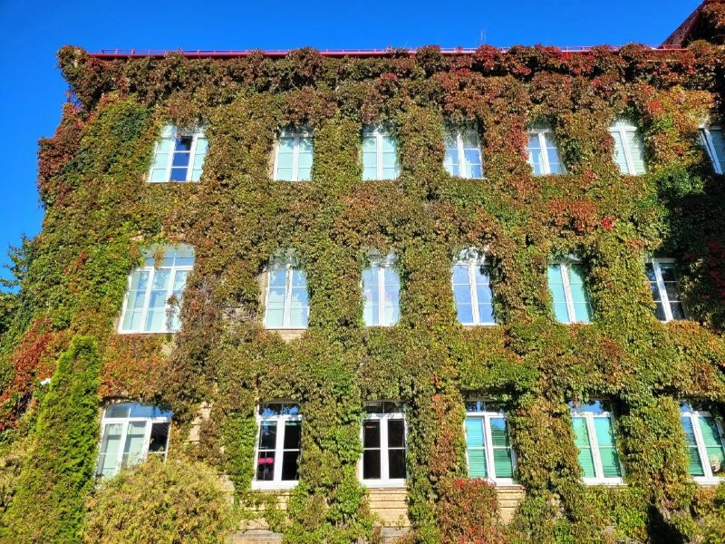 На первый взгляд, неожиданная достопримечательность города - фасад одного из корпусов местного университета имени Янки Купалы. Его стена полностью увита диким виноградом, который весной и летом превращается в настоящий живой ковер, а осенью здание вспыхивает оттенками красного и золота.
