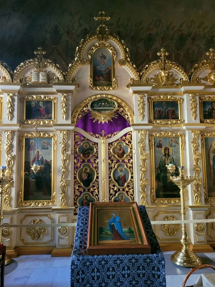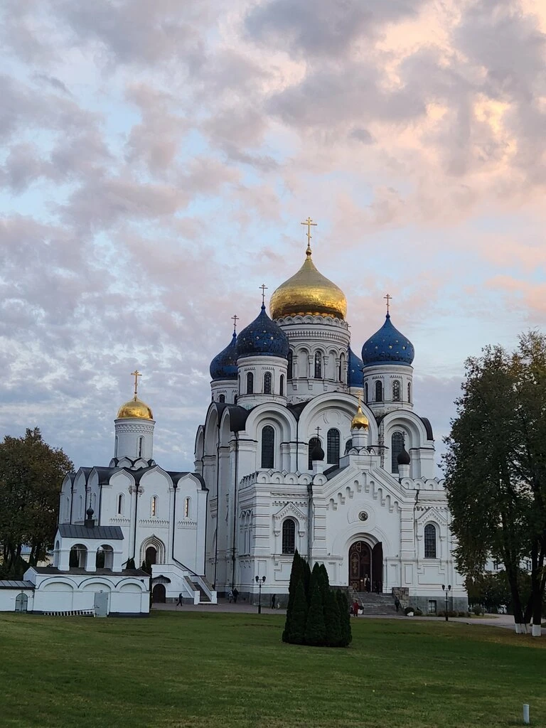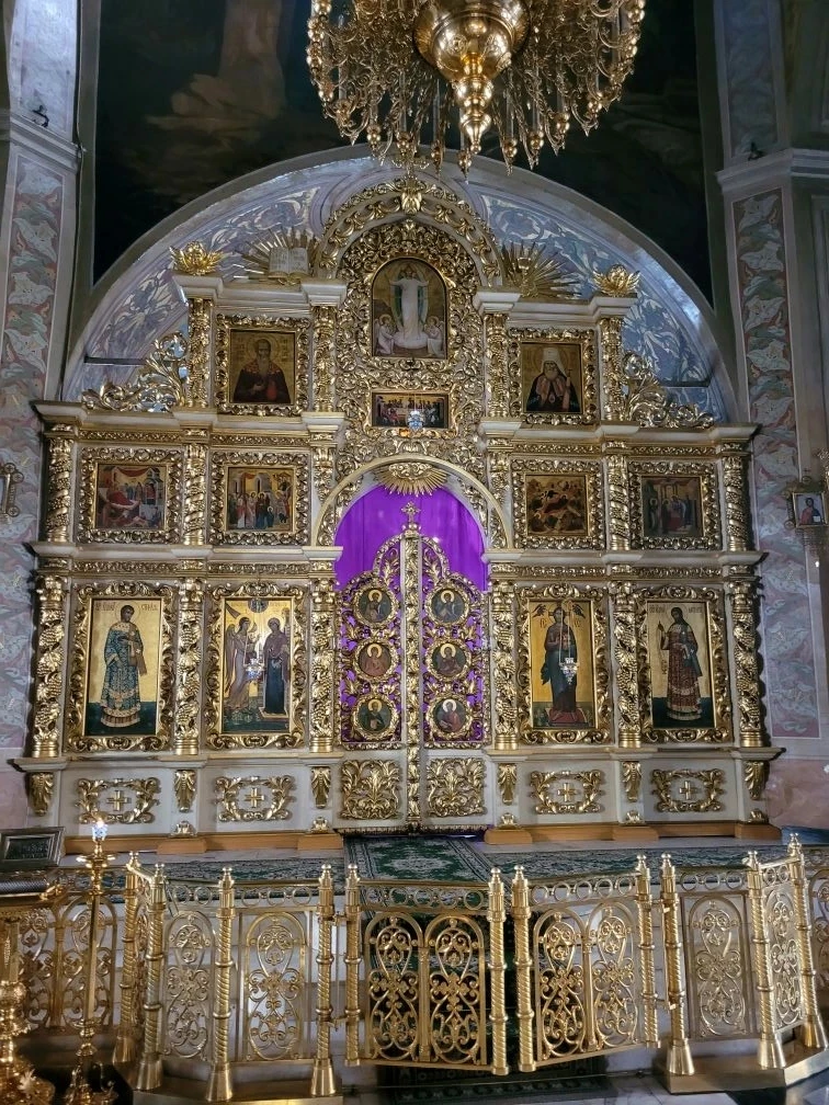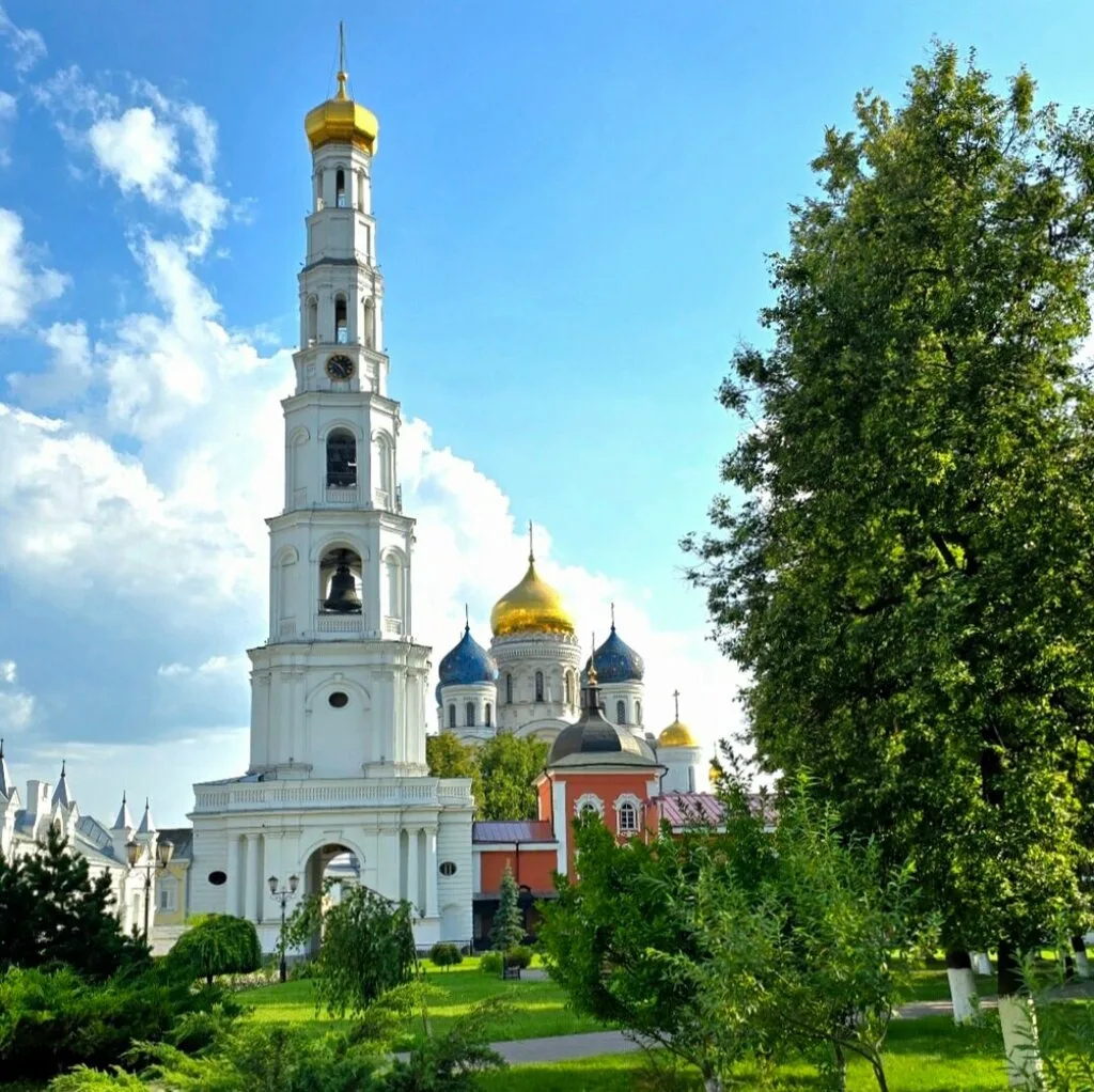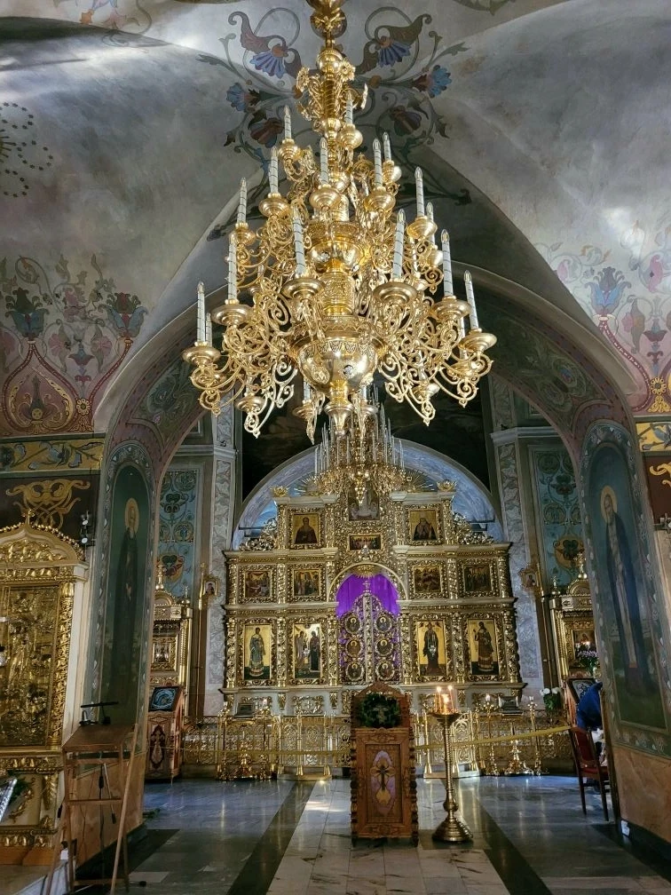 На территории монастыря находится громадная колокольня, несколько соборов и церквей. Центральный - Спасо-Преображенский с золотыми и синими куполами, в русско-византийском стиле.