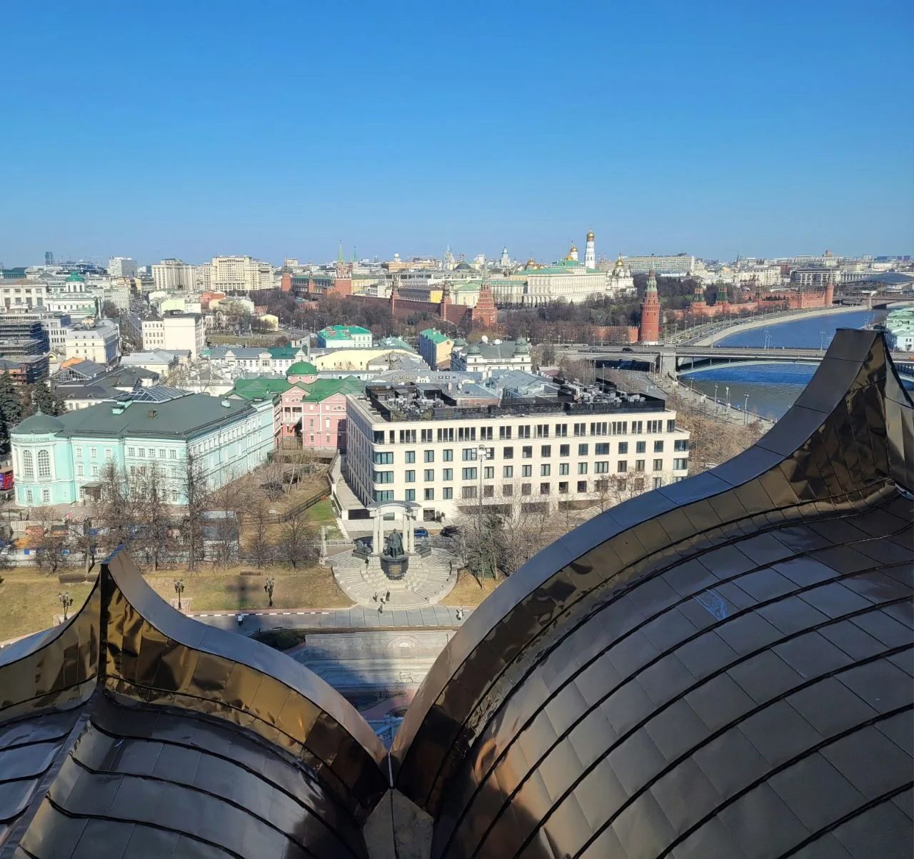 Очень рекомендую в ясную безоблачную погоду посетить смотровую в Храме Христа Спасителя в Москве. Состоит она из 4 открытых террас, с которых можно увидеть центр столицы с разных сторон. Как на ладони, предстаёт величественный Кремль.
