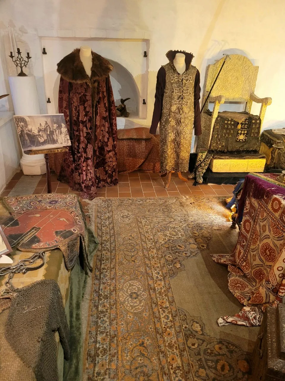 Внутри предметы старины и отреставрированные интерьеры, среди которых меня наиболее впечатлили королевская баня, парадный алебастровый зал и королевская часовня. Как бонус - на крыше находится открытая смотровая площадка, с которой открывается панорамный вид на окрестности реки Неман.
