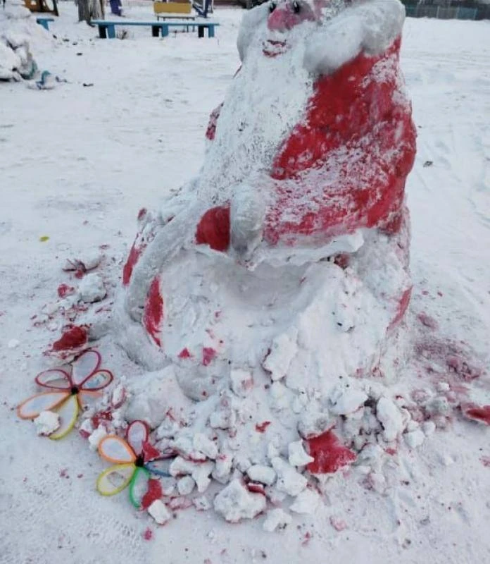 😔 В Могоче вандалы разбили ледяные новогодние скульптуры, которые не простояли и недели.