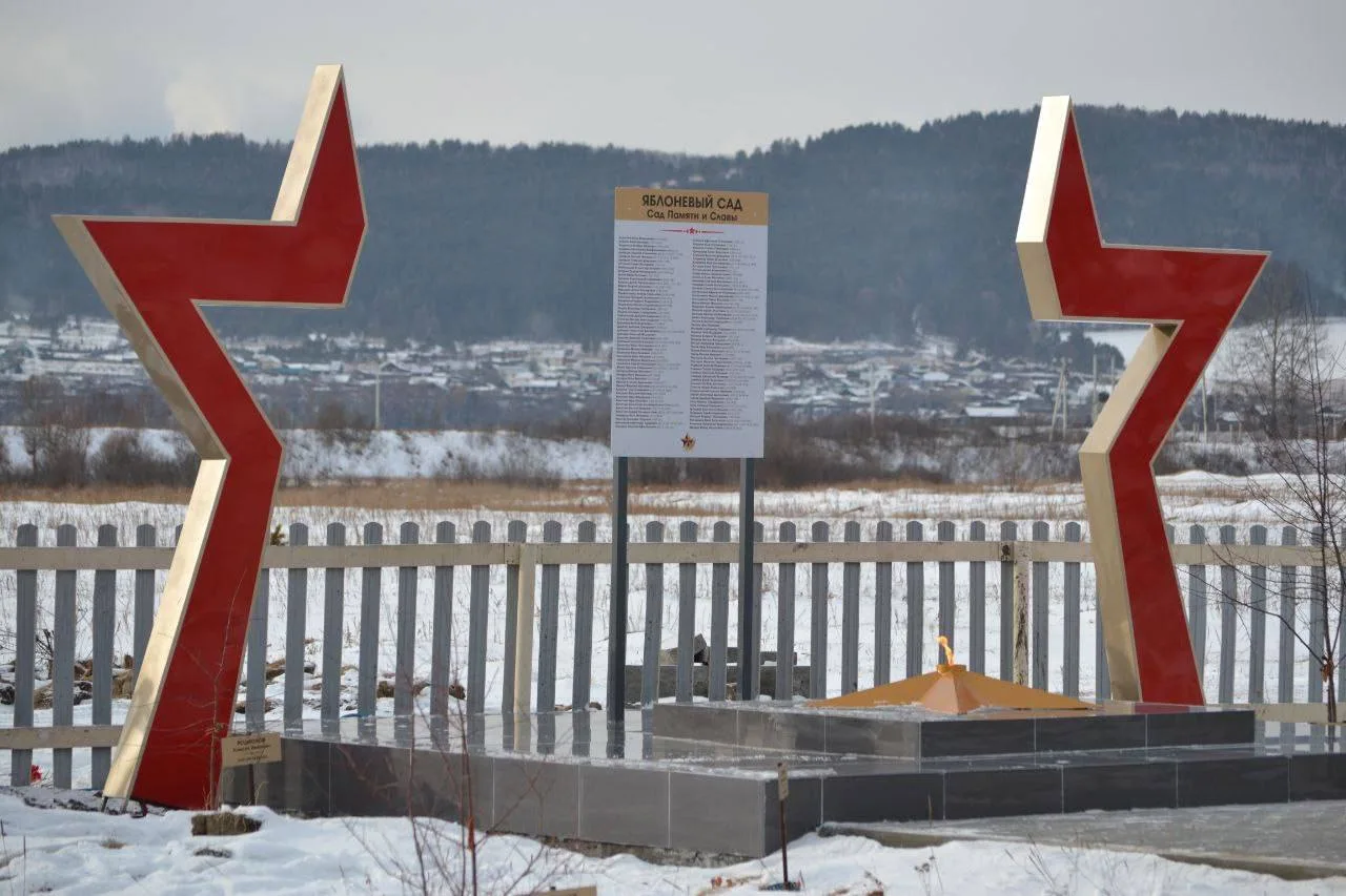 Проект был реализован местными жителями в рамках ТОСа «Яблоневый сад» при поддержке гранта. На обустроенной территории создан мемориальный комплекс с вечным огнём и стелой.