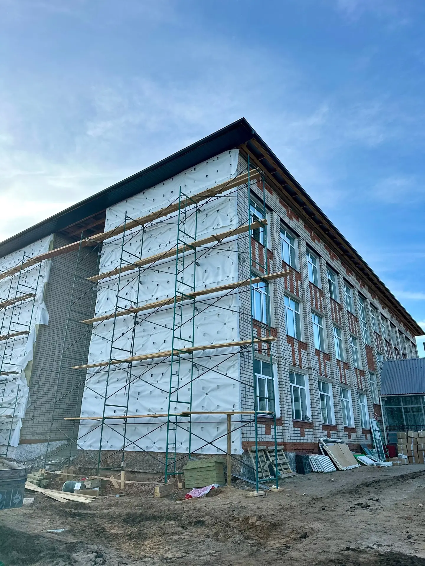 Ведутся работы по демонтажу облицовки и кровли спортивного зала спортшколы в Пестрецах. Там начат капитальный ремонт. Параллельно и внутри здания продолжаются работы — демонтажные работы, устройство основания пола на 1 этаже, устройство инженерных коммуникаций, внутренние работы на 2 этаже.