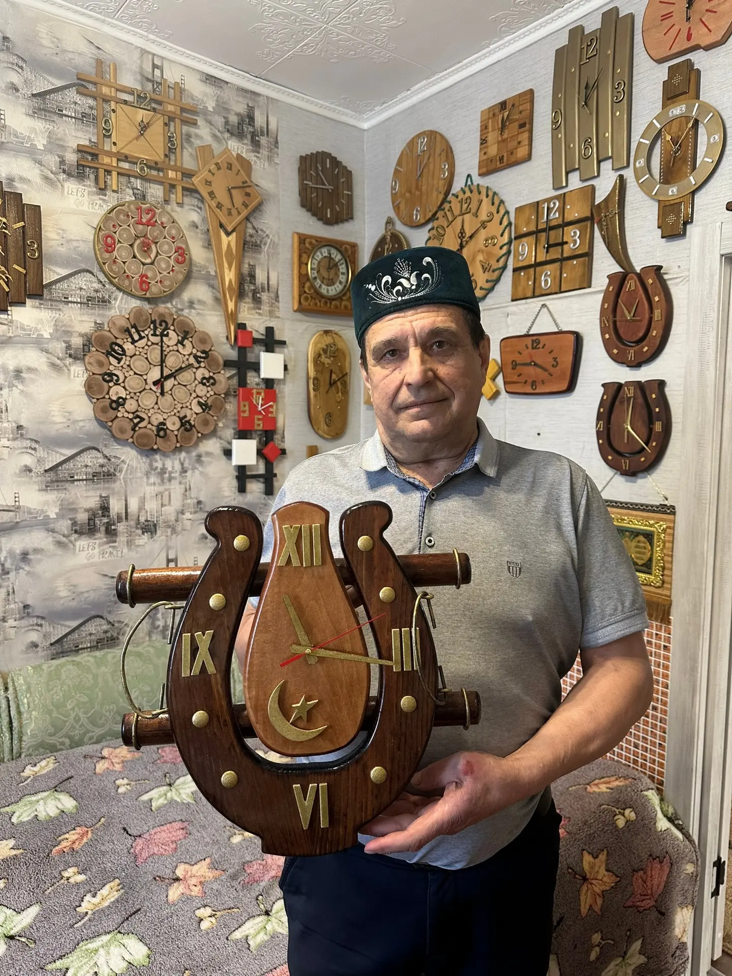 Мавлет Зарипов из села Новое Ибрайкино Аксубаевского района по праву считается изумительным специалистом по часам. За три года он сделал более ста экспонатов. Его отец всю жизнь ремонтировал часы и швейные машины. Во времена детства маленький Мавлет свое время проводил с ним, от него и научился мастерству. Три года назад один человек показал ему старинные часы, он не работал. Зарипов попробовал починить. Поменял сгнившие деревянные конструкции и красиво оформил часы, получилось шикарно. После этого у него всё и началось. Настоящий мастер своего дела🔥