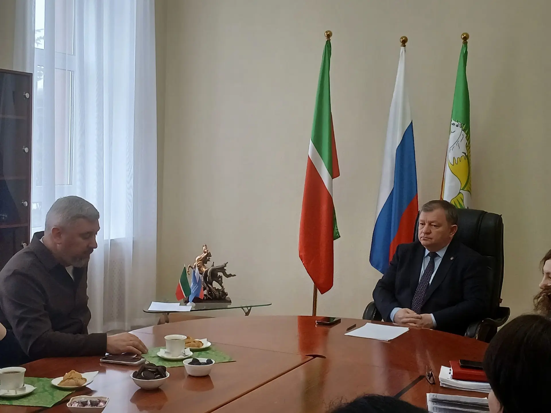 Цифровая платформа «Муниципалитеты Татарстана» продолжает публиковать материалы про планы и задачи глав районов республики, избранных в сентябре 2025 года на ближайшие пять лет. Как они планируют развивать территорию и какими перспективными направлениями будут заниматься — вот чем мы интересуемся. Встретились с главой Алексеевского района Сергеем Демидовым. Состоялся обстоятельный разговор, имеем представление, в каком направлении будет двигаться Алексеевское. Ключевыми для муниципалитета являются туризм, экономика, промышленность, социальная инфраструктура и сельское хозяйство. Не секрет, что Билярск стал центром притяжения гостей не только из близлежащих районов, но и со всей России. Про местный Святой Ключ слагают легенды. Кстати, там сейчас идет благоустройство. Часть работ уже выполнили, но еще есть что нужно сделать. Там красиво, уютно и душевно. Рядом расположена страусиная ферма, где помимо них есть еще верблюды, енот, дикобраз, козы, пятнистый олень, павлины, нутрии и другие забавные животные. Кроме этого, полюбился туристам и ледовый дворец в поселке Алексеевское и Центр бадминтона, куда приезжают спортсмены со всей страны. Там для них созданы все условия, даже гостиница имеется. Ко всему этому еще надо добавить, что на территории Алексеевского района работают 4 рыболовные базы. Только за последнее время в местном промпарке появились 9 новых производств. Один из них, где делают кабеля, мы также посетили и убедились в том, что мощный промышленный кластер создан в районе. Кроме таких крупных предприятий, как «Алексеевскдорстрой» и «Алексеевская керамика», ведут работу еще и другие не менее интересные производства. Мы побывали в «Татмаш», где делают асфальтобетонные заводы. Да, кстати, когда я в прошлый раз посещал Алексеевский район, только думали о модернизации местного маслозавода, сегодня он прекрасно работает. Что немаловажно, о кадрах тут тоже заботятся. Так, 65 студентов местного колледжа закреплены за предприятиями. Еще из интересного, в Алексеевском собрали всех психологов в одном месте, им даже дали отдельное помещение. В скором времени в поселке появится памятник бойцам СВО, сегодня идет обсуждение проекта. Алексеевский район активно участвует в республиканских и федеральных проектах для развития территории. В прошлом году благоустроили набережную реки Ахтырка. Мы побывали в детском саду «Солнышко», где буквально на днях завершился капремонт. Муниципалитет взял курс на развитие. Давно наблюдаем за Алексеевским районом, тут работать умеют.