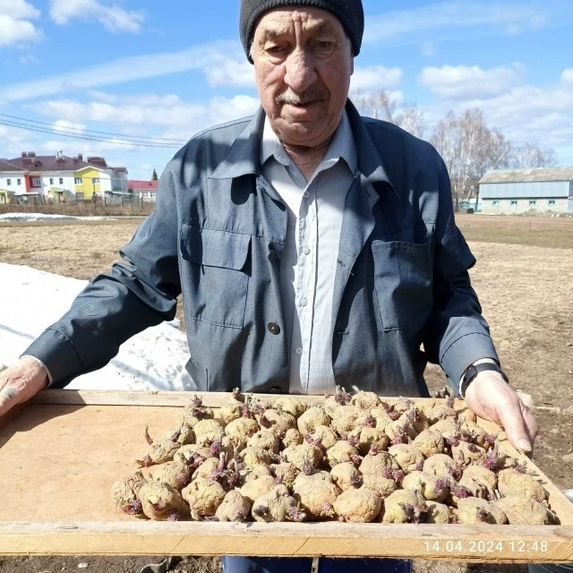 75-летний Гусман Хасаншин из села Норма одним из первых в Балтасинском районе посадил картофель. В огород он вышел 15 апреля. Сажает картошку на площади в 16 кв.м. Гусман абый каждый год в середине апреля уже занимается нужным делом. Осенью оставляет огород обработанным. На каждую ямочку сначала кладет золу, потом песок, затем картофель, снова немного золы и закапывает. Первый урожай начинает собирать уже к 15 июня.