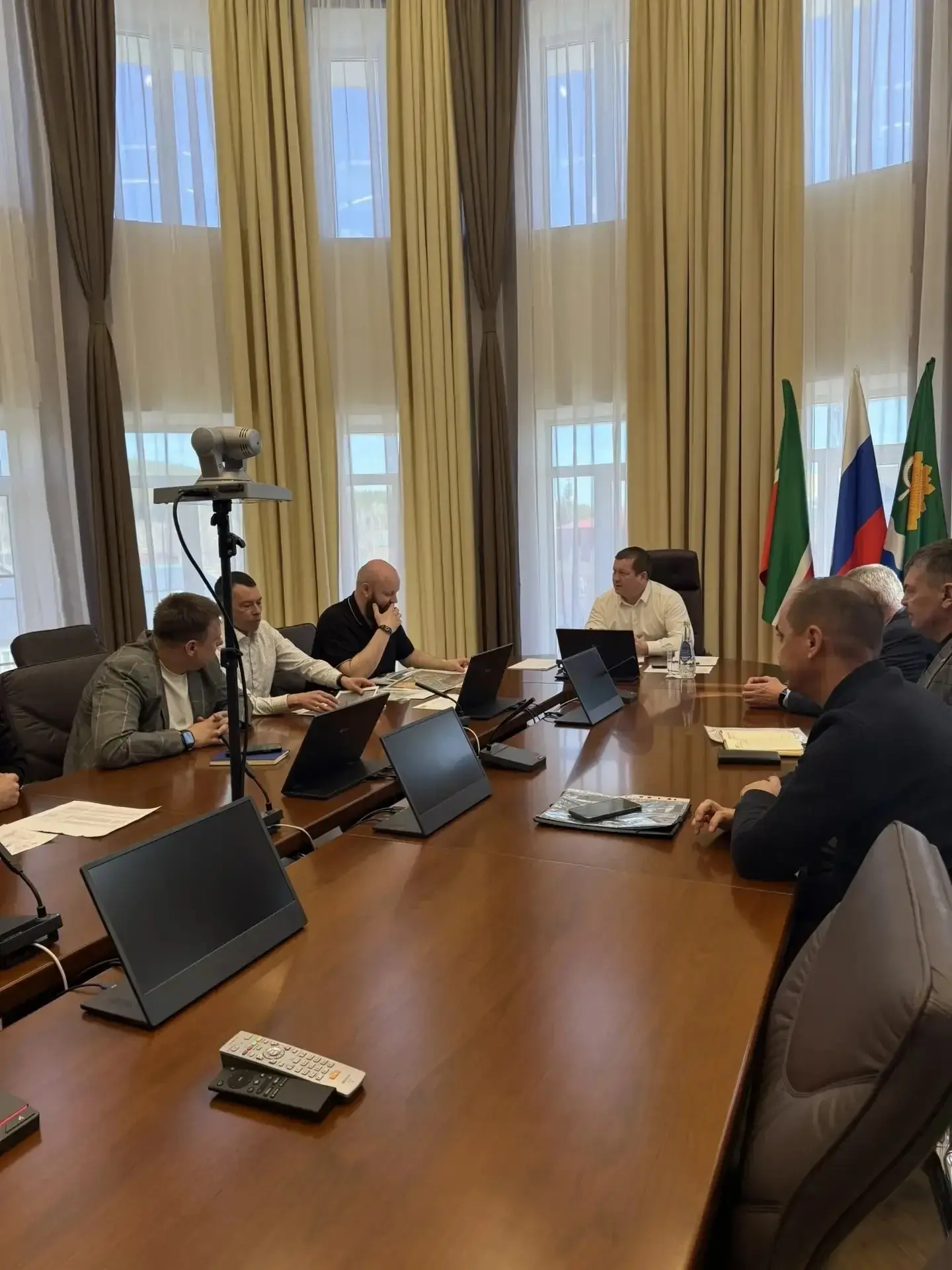 Кстати, глава района Роберт Искандаров прямо из кабинета может наблюдать ситуацию в городе. 360 камер (на втором фото) дают картину всего происходящего в Менделеевске. Это эффективно и удобно для оперативной реакции на возникающие проблемы. В общем, договорились на том, что я еще раз приеду в Менделеевск, там уже более детально посмотрим город и какие работы там ведутся.