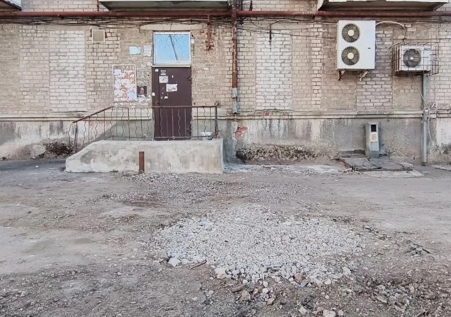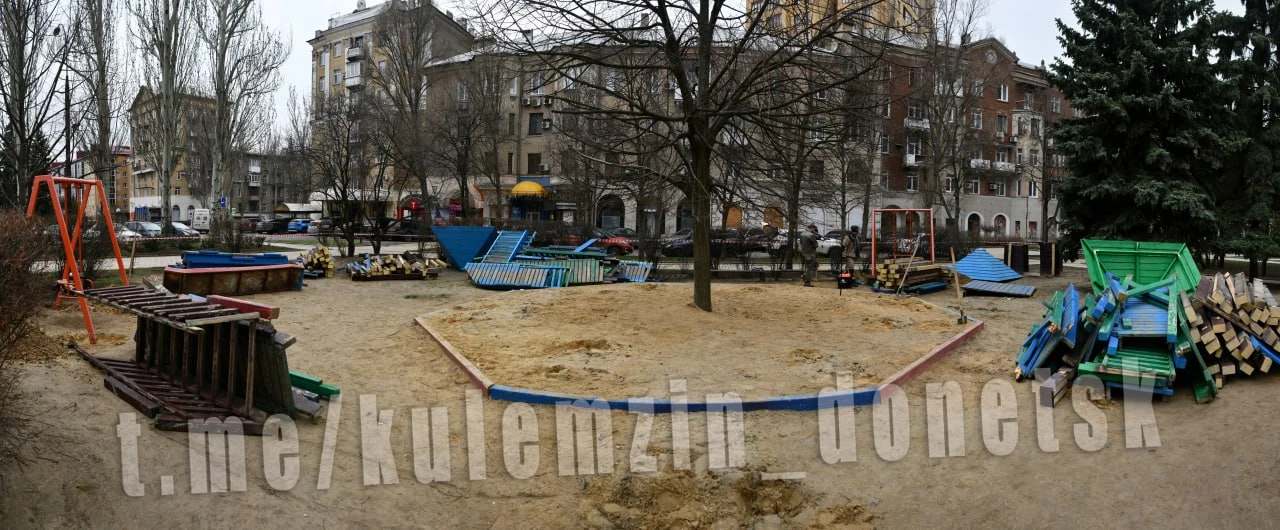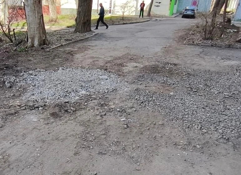 Жители Донецка собственноручно заделывают ямы во дворах.