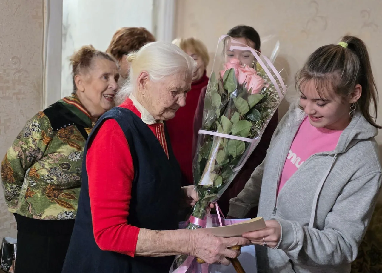 Связь поколений: сотрудники Управы и школьники поздравили ветерана со1⃣0⃣1⃣-м днём рождения.