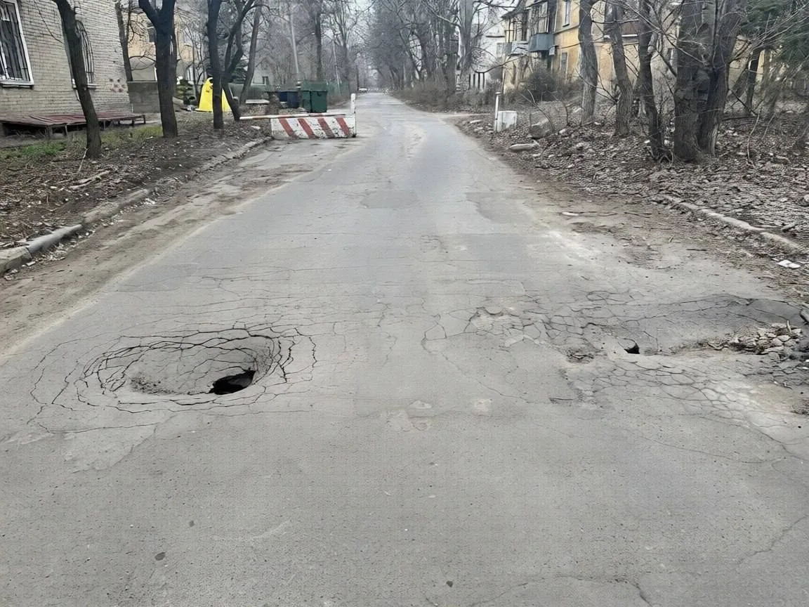 Проваливается асфальт на ул. Левицкого, 17 в Донецке