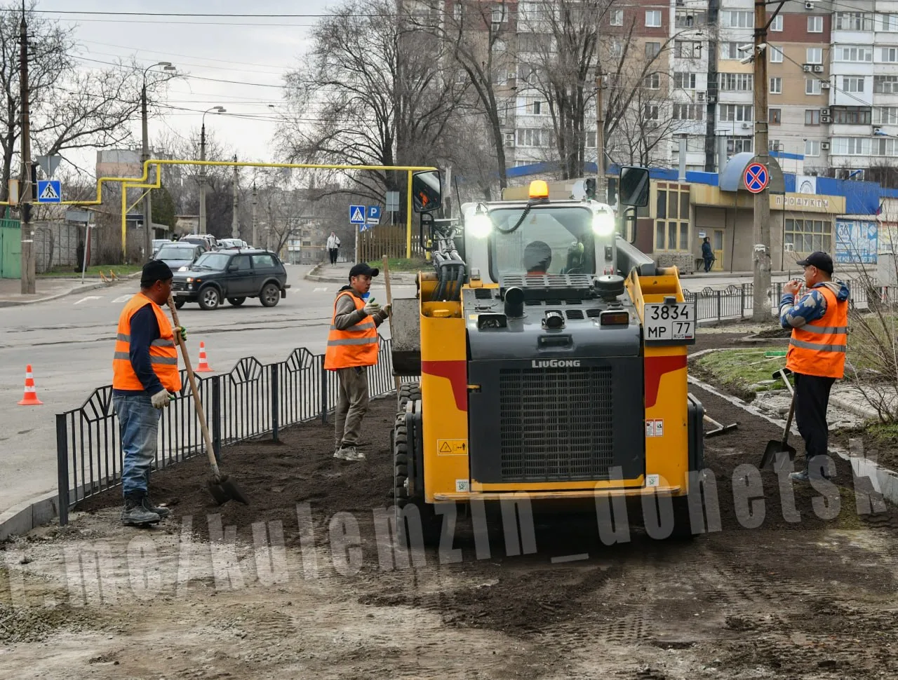 🚜 По проспекту Дзержинского ведутся работы по ремонту бортового камня.