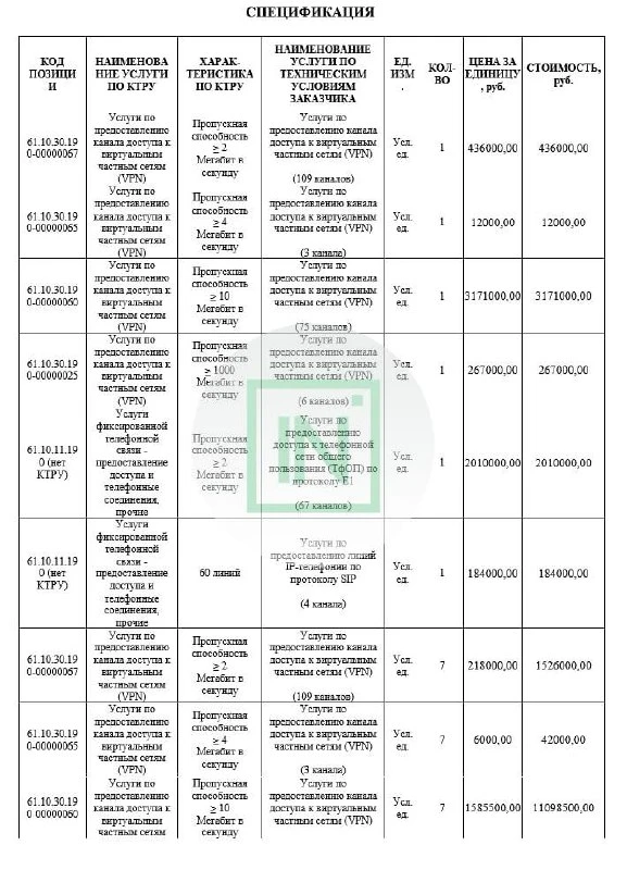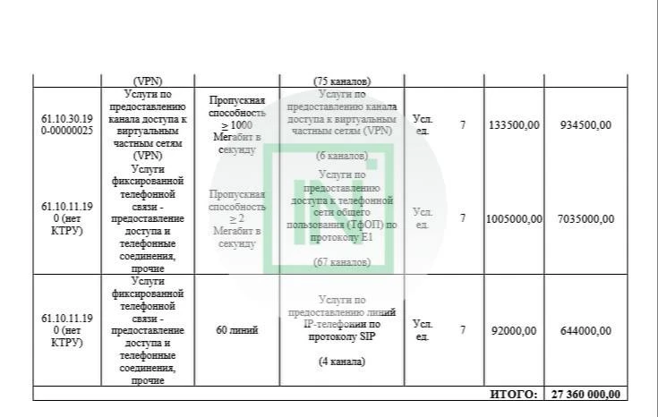 Контракт включает IP-телефонию, обычную телефонную сеть и VPN. Платить за услуги будут поэтапно (всего их будет восемь) до конца контракта — сейчас из бюджета уже выплатили более 9 миллионов рублей рублей, судя по документу.