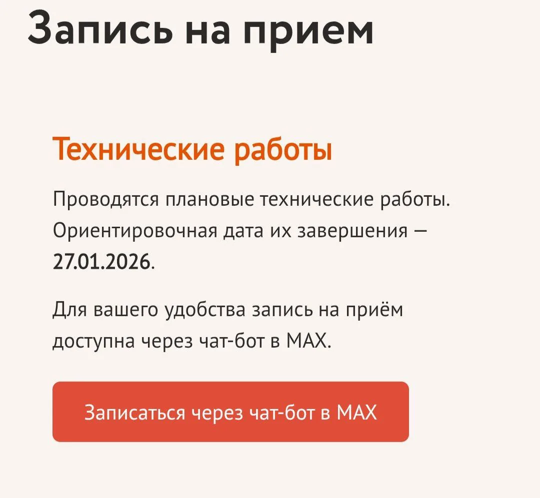 Пользователям предлагают альтернативу — записываться через бот в национальном мессенджере Max, а срок открытия записи переносят уже в третий раз.