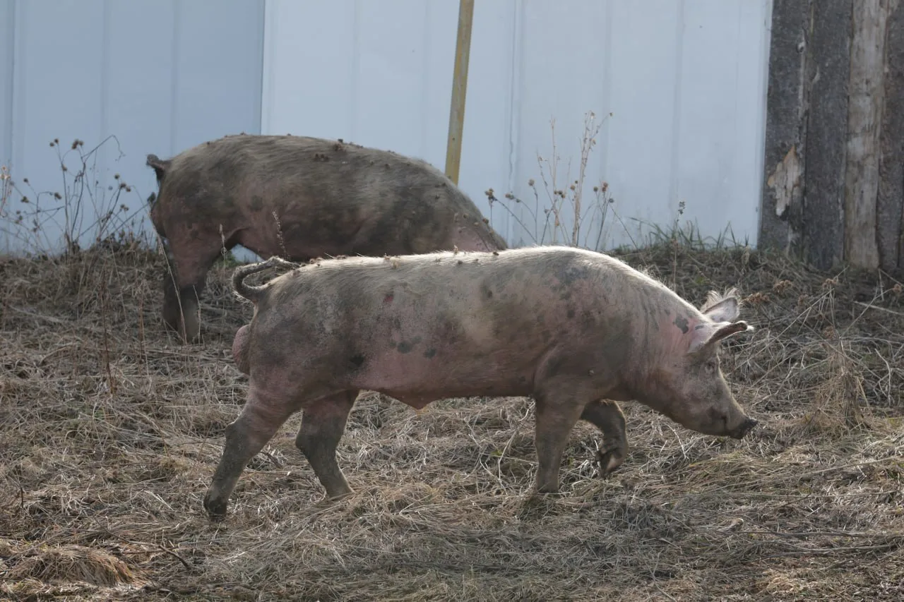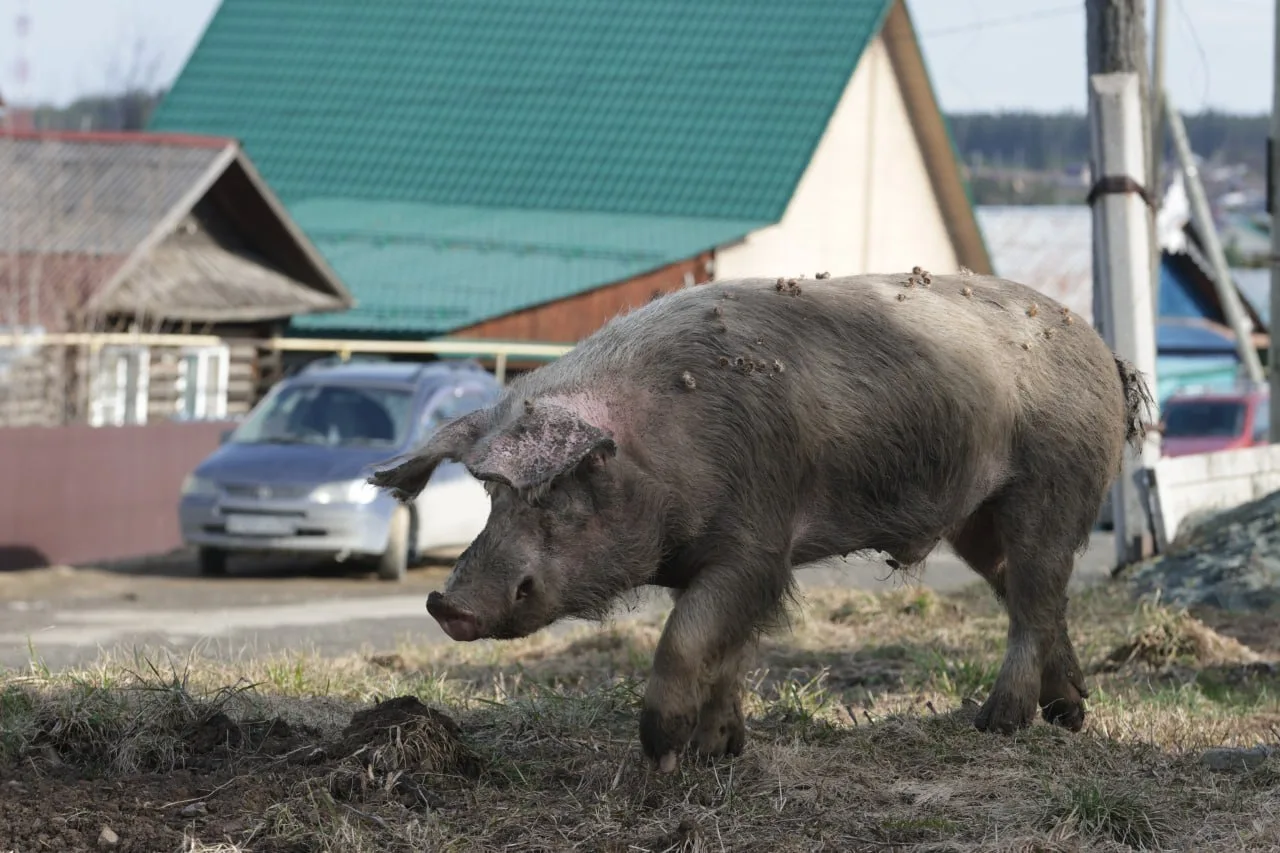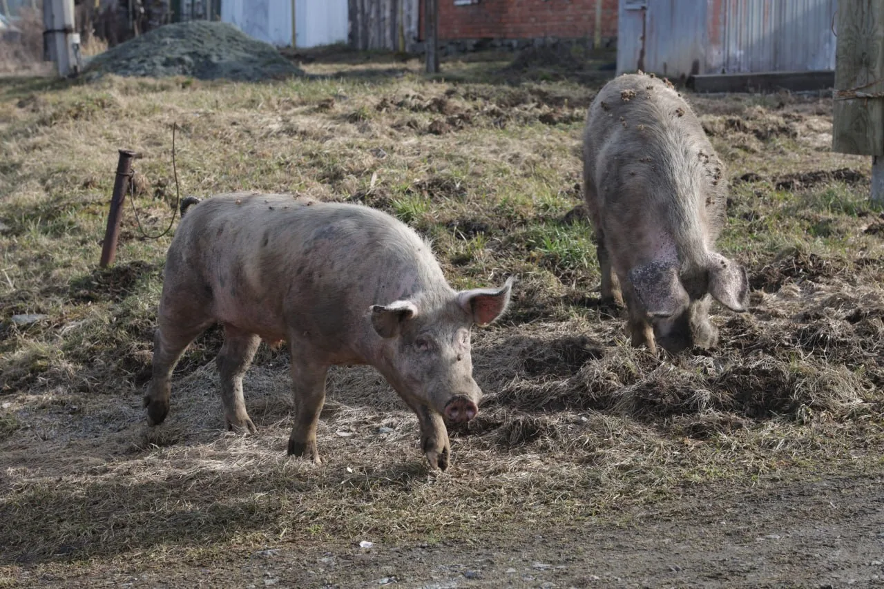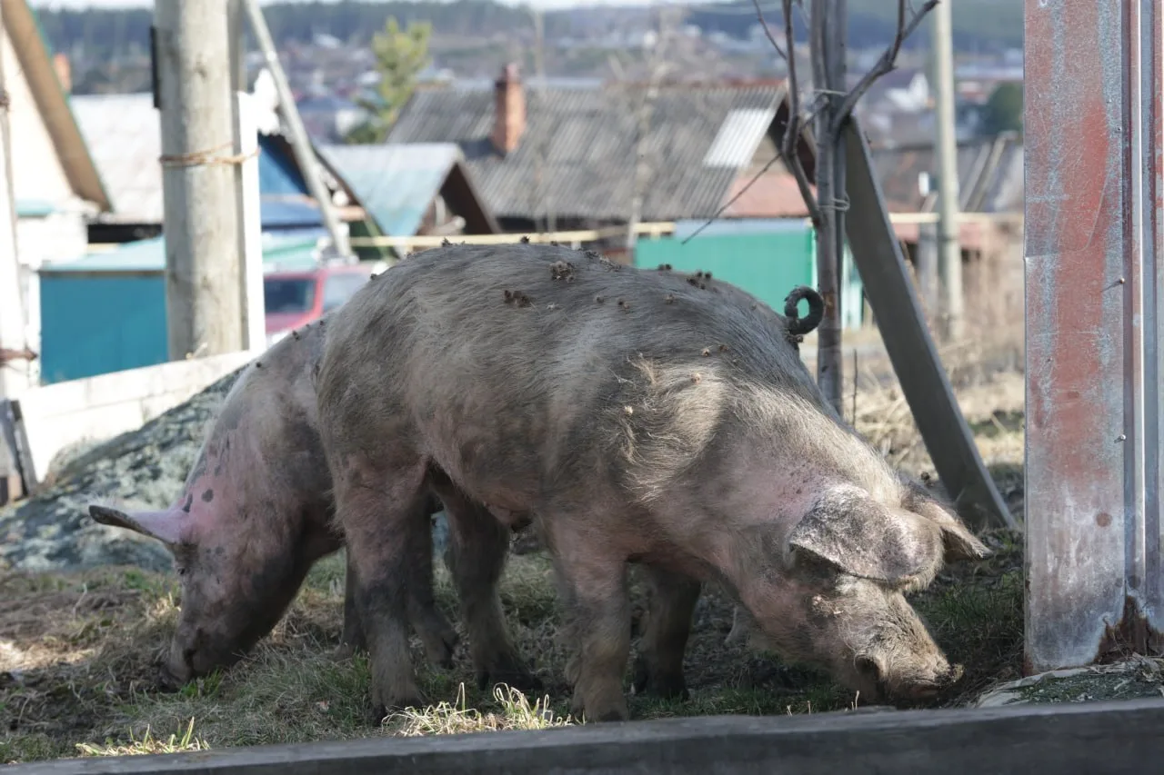 Местные говорят, что фермер начал забой — якобы он загонял хрюшек к себе на участок. Тогда недалеко от дома нашли туши свиней.