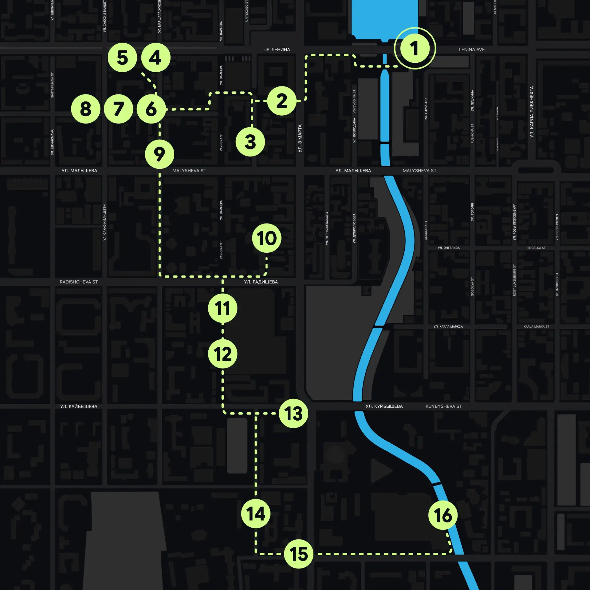 В маршрут вошли 16 точек — собрали работы разных лет и авторов. Они отличаются по стилю и идее, чтобы показать уличное искусство города во всем разнообразии.