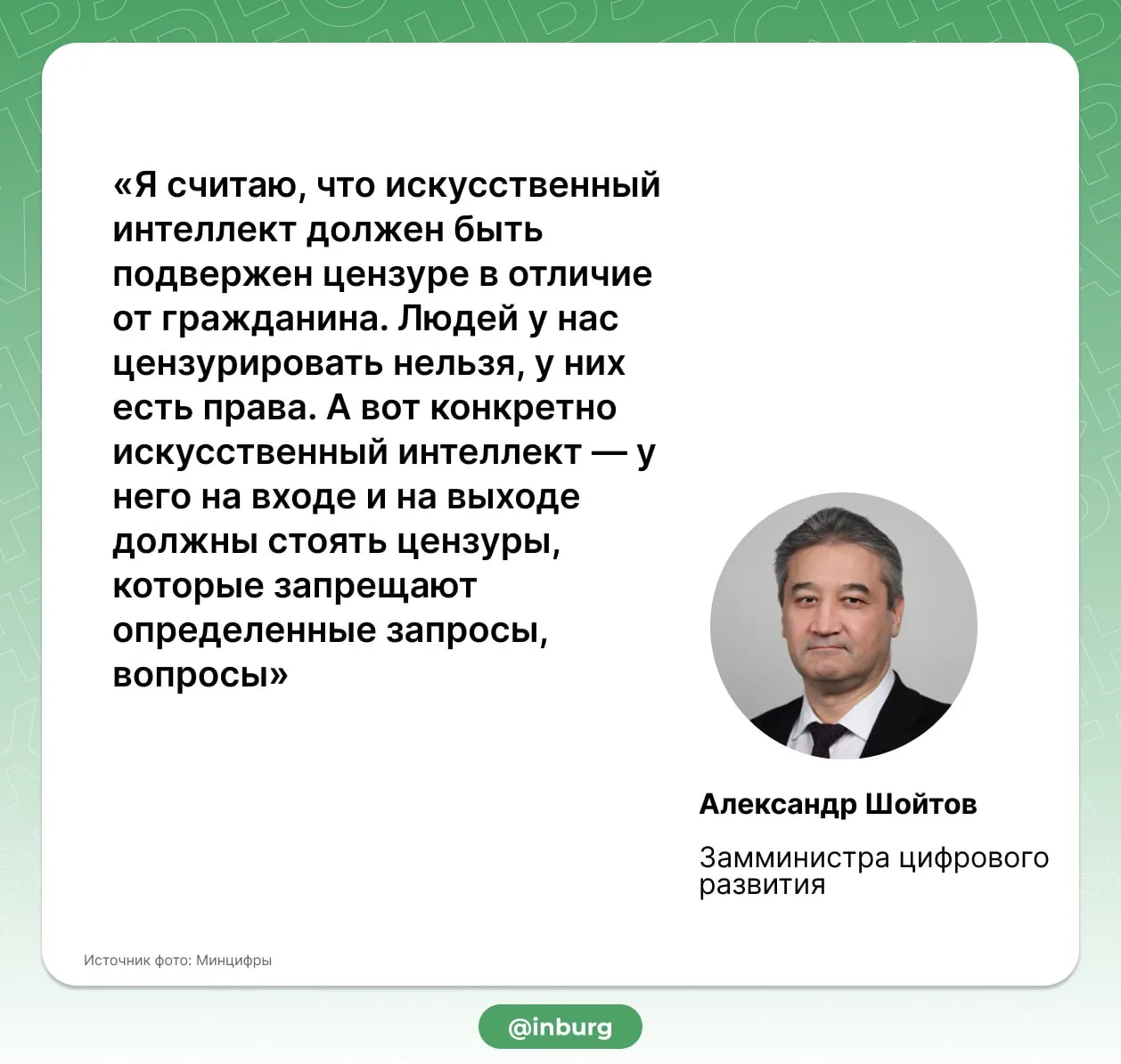 Искусственный интеллект в России надо подвергнуть цензуре — об этом заявил замглавы Минцифры Александр Шойтов