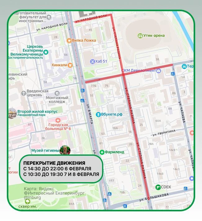 С 6 по 8 февраля ограничат движение и парковку возле «УГМК-Арены» на время фестиваля «Неделя звезд хоккея»
