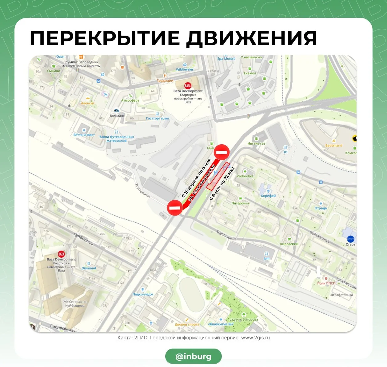 С сегодняшнего дня по 8 мая для движения закроют часть Комсомольской. Затем, с 8 по 22 мая, ограничения введут на перекрестке Комсомольской и Байкальской.