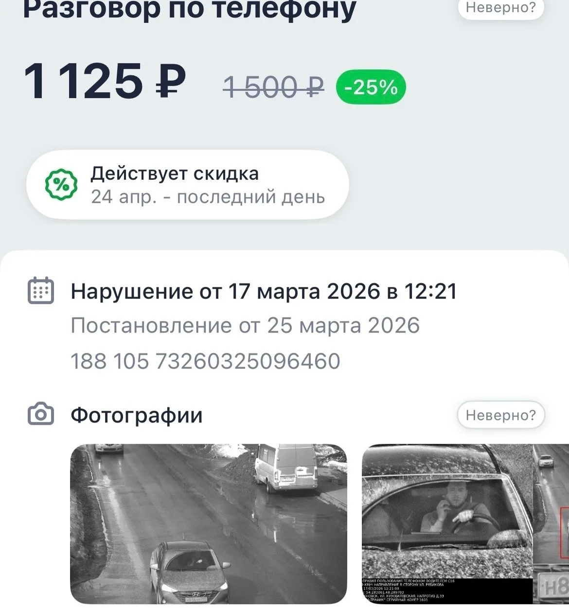 17 марта водителю пришел штраф 1500₽. Камеры автоматически приняли, что мужчина говорит по телефону.