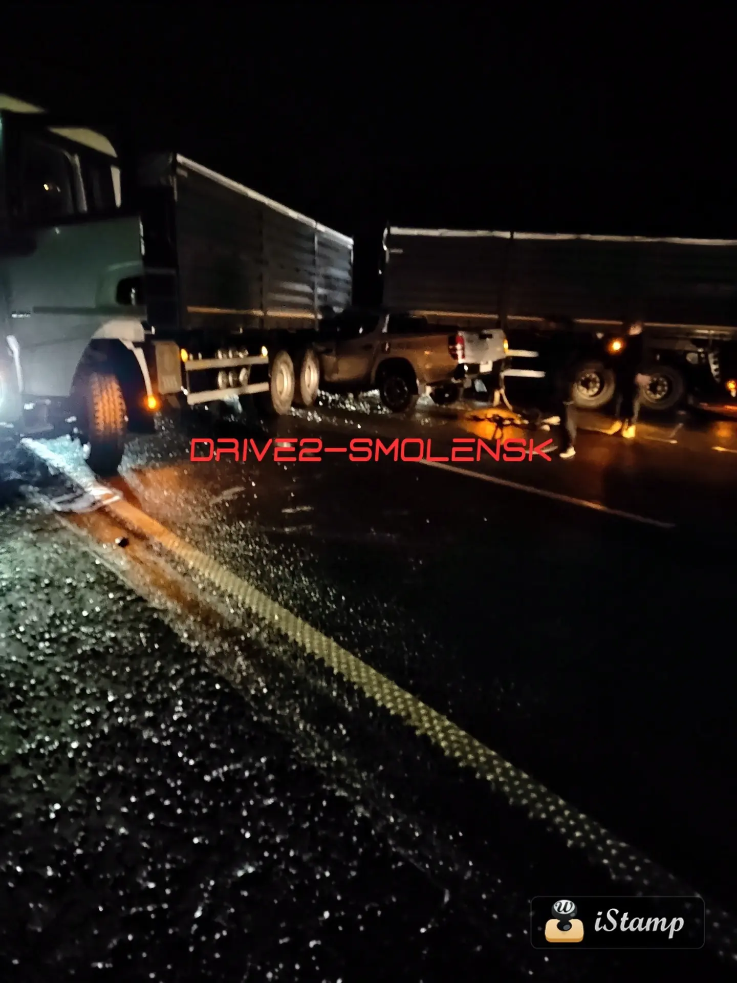 Пикап «Митсубиши l200» влетел между тягачом и прицепом зерновоза «Шахман». Водителя «Митсубиши» забрала скорая, пассажир отказался от госпитализации