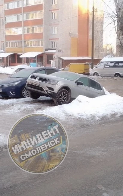 ❗️Смоленск, ул. Кловская, дом 23А, отсутствует вода более 4-х часов, из-за аварии. В образовавшийся провал уже наполовину провалился припаркованный автомобиль. А аварийная Водоканала даже не выехала. Дом из 356 квартир и, возможно, соседние дома, без воды. Подвоз никто не организовал.