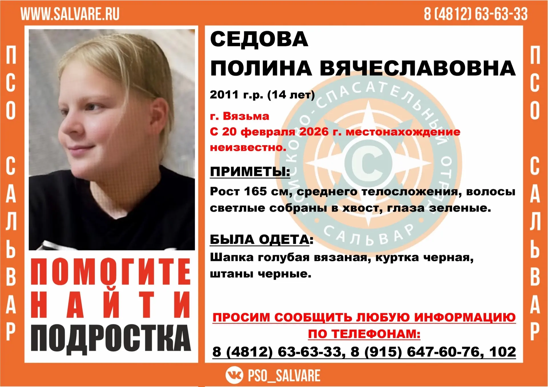 ❗️В Смоленской области разыскивают 14-летнюю девочку