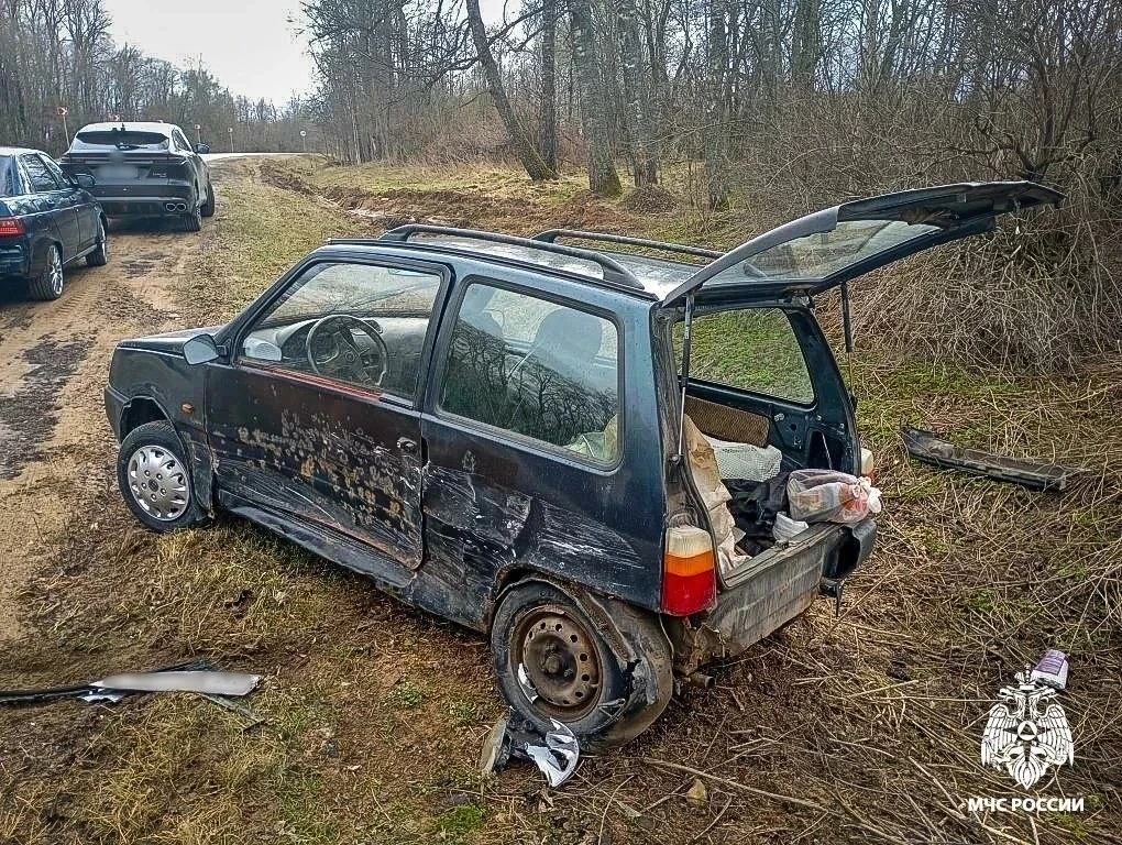 В Духовщинском округе у деревни Зуево произошло ДТП. Два легковых автомобиля не поделили дорогу, после чего оба съехали в кювет.