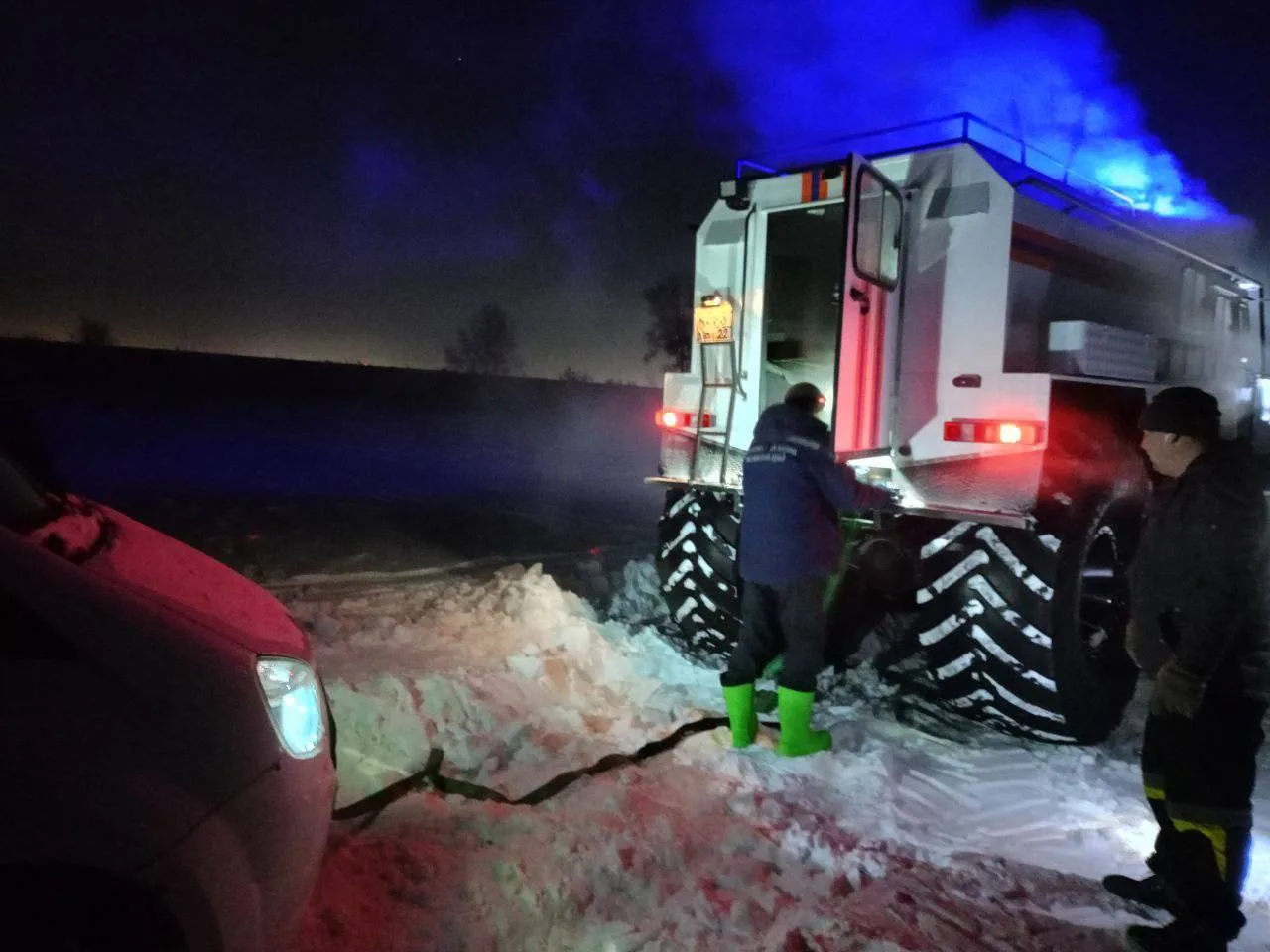 Спасатели оперативно выехали на место, обследовали территорию с помощью снегохода и после оценки обстановки задействовали болотоход. С его помощью автомобиль отбуксировали на твёрдый участок, после чего водитель смог продолжить движение самостоятельно.