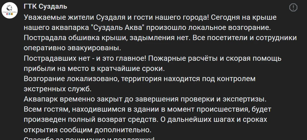 Еще кадры с пожара в Суздале в Аквапарке. Ужас. Только открыли и уже такой разнос