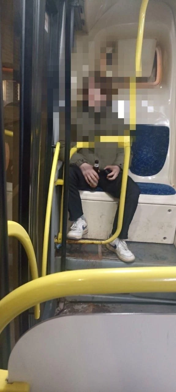 Вот так чья-то сыночка-корзиночка едет в автобусе в луже собственной рвоты и бутылкой пива в руках с невозмутимым видом!