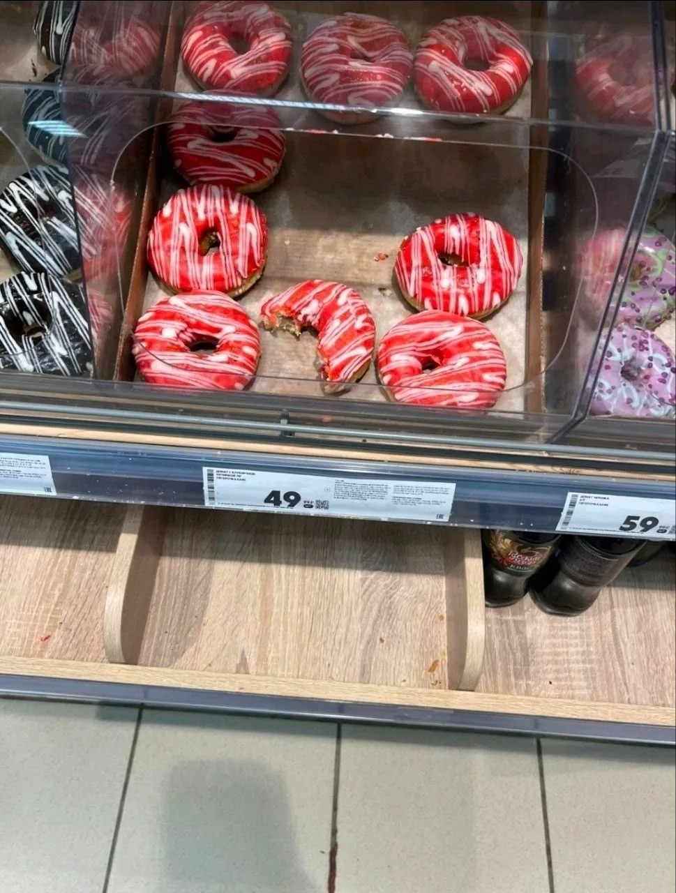 Cегодня наблюдала картину , как мама с ребенком откусывали каждый донат и решали «ну что , какие к чаю возьмём?»