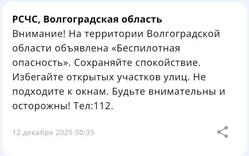 Беспилотная опасность объявлена в Волгоградской области спустя двое суток затишья