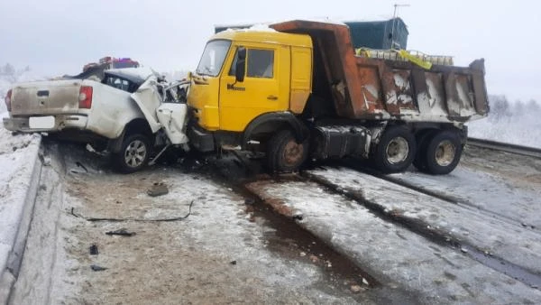 В Котласском округе легковой автомобиль выехал на встречную полосу в запретной зоне и в итоге столкнулся с самосвалом. В результате аварии водитель пикапа оказался в больнице с тяжелыми травмами.