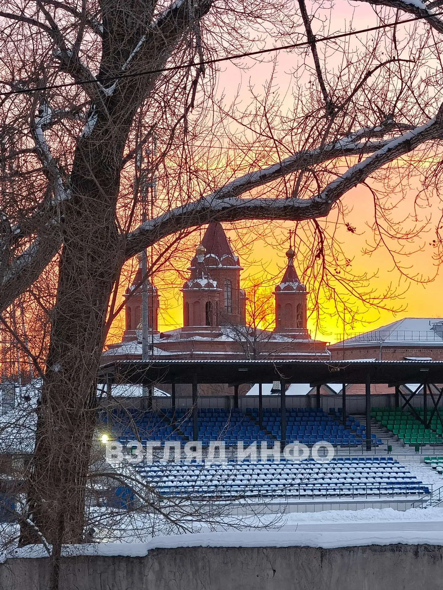 Купола Вознесенской церкви в Минусинске в лучах пятничного заката 🌇