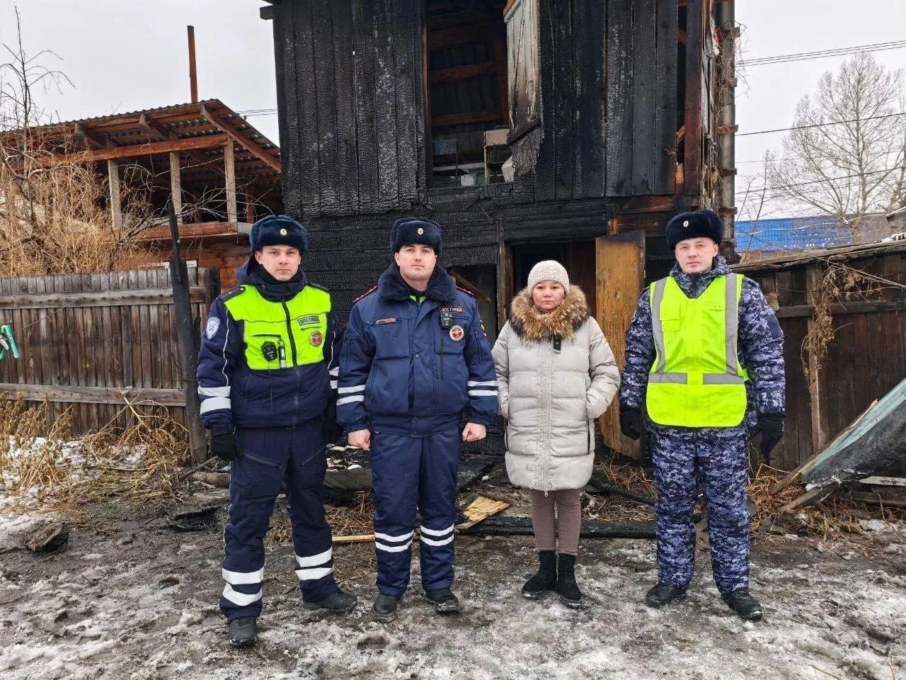 Во время патрулирования госавтоинспекторы Минусинска заметили горящую баню, соединенную с домом. Младший лейтенант Виталий Бибиков, старший лейтенант Алексей Неустроев и стажер Александр Деревцов вошли внутрь и обнаружили двоих взрослых с подростком.