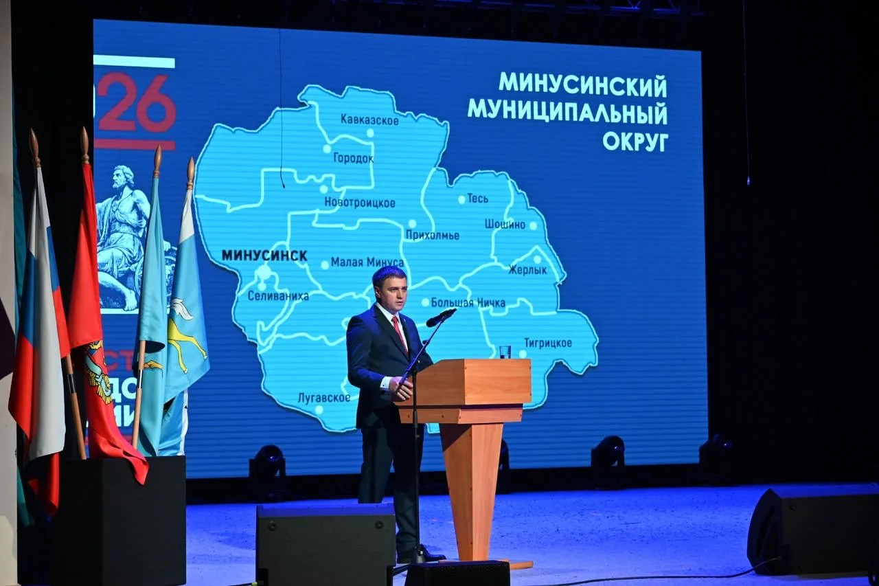Глава Дмитрий Меркулов обозначил планы развития объединённого Минусинского округа. Кульминация — закладка капсулы времени с посланиями на 100 лет в музей.
